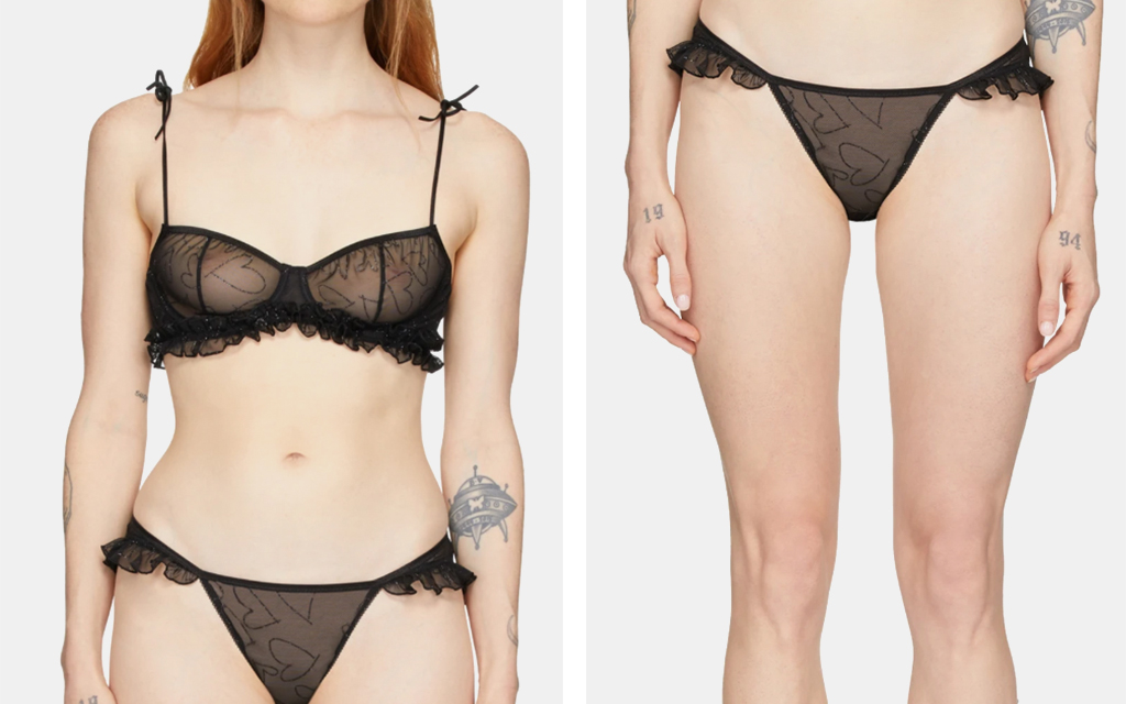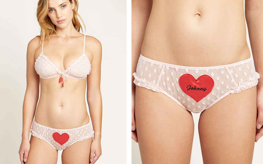 This set from Morgan Lane is aggressively Valentine’s themed, but if you know she likes to feel festive, then she’ll appreciate the excess of pink and red (and the hearts of course). The soft cup bra and French polka dot mesh means it’s actually comfortable to wear, so she’ll be able to don it beyond V-Day. Also, we have no idea who Johnny is.