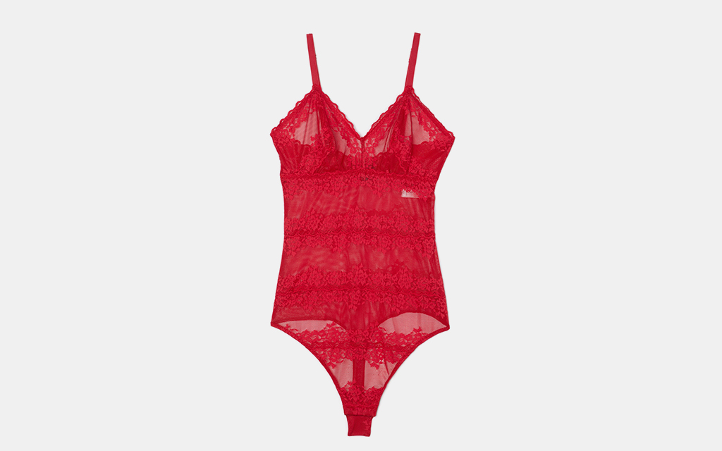 Red lace for Valentine’s Day? Okay, sure, it’s a little cliché, but this Cosabella bodysuit is a nice starter piece. Plus, the great thing about a bodysuit is that if she’s feeling a little risqué, she can throw a jacket on over it (or no jacket at all) and wear it out of the house.
