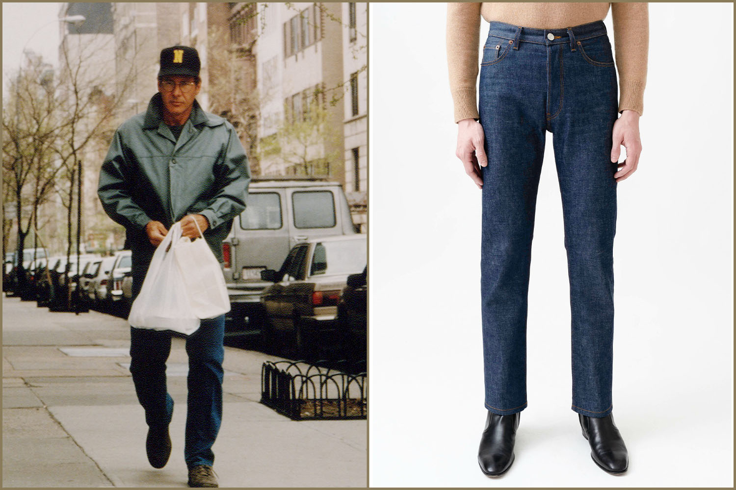 Ford’s style moves tend to revolve around formal pieces, but that’s not to disregard his off-duty attire. In fact, his approach for a casual outing is incredibly appealing, most commonly centered on lace up boots, blue jeans, oversized jackets and baseball caps. Our eyes are on the jeans here in particular: selected in a straight cut for comfort and a natural complement to the silhouette. Husbands Paris offers an equally flattering style today, cut with a high waist for elongation.