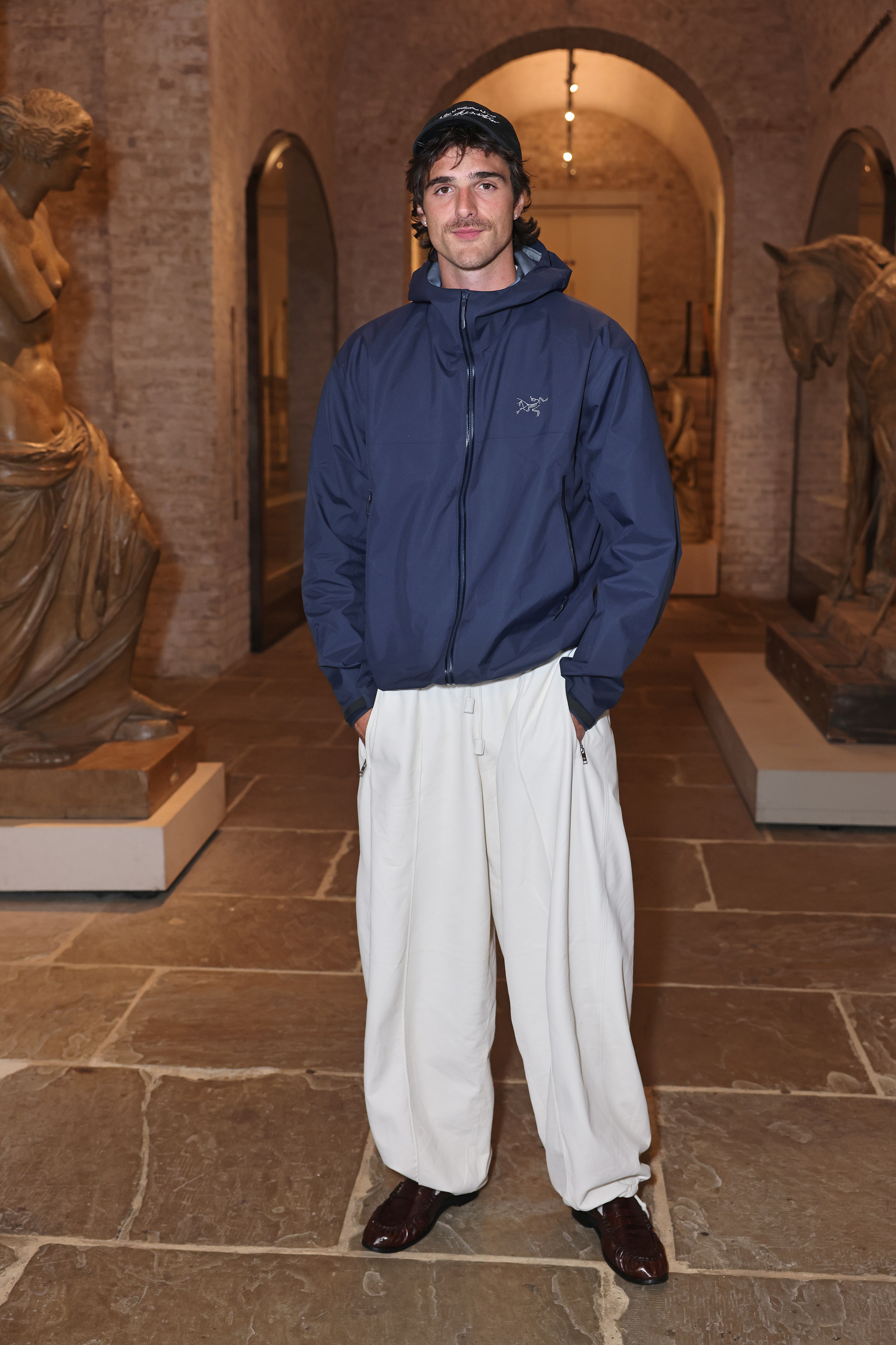 Nor is the actor committed to traditional red carpet fare. A Netflix-hosted BAFTA Q&A saw Elordi in his menswear insider baseball bag, decked out in a Gore-Tex shell from Canadian outdoor label Arc’teryx, ultra-wide drawstring trousers and fan-favorite crinkled box-toe leather Saint Laurent loafers, capped off (literally) with some shameless self-promotion in the form of a navy Frankenstein-branded dad hat.