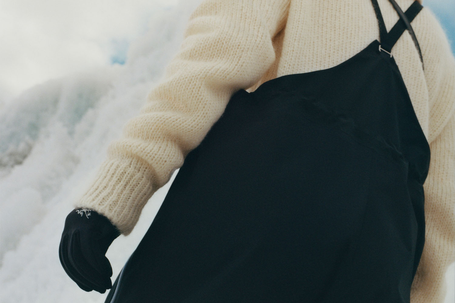 The two other pieces, a ski overall and set of bib pants, are likewise centered at the apex of performance and design. “We both grew up spending time in the mountains enjoying winter sports, but we could never find garments that balanced high performance with high aesthetic quality. Eventually, with Arc’teryx, a company we have always admired for their rigor and commitment to research, we had the chance to design them,” said Lucie and Luke Meier, joint creative directors at Jil Sander.