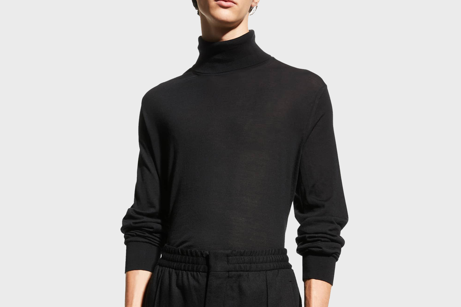 When it comes to a cocktail party ensemble — particularly an ensemble for a cocktail party you are hosting — don’t be afraid to church it up a little bit. Again, this year in particular has an especially elevated air of festivity, and you shouldn’t be afraid to let that be reflected in an elevated, elegant fit. So bust out that showstopping dinner jacket you’ve been saving for a special occasion, throw a turtleneck underneath to keep ‘em guessing, then round it out with a left-of-center footwear choice (like a velvet mule) to really keep ‘em guessing.
