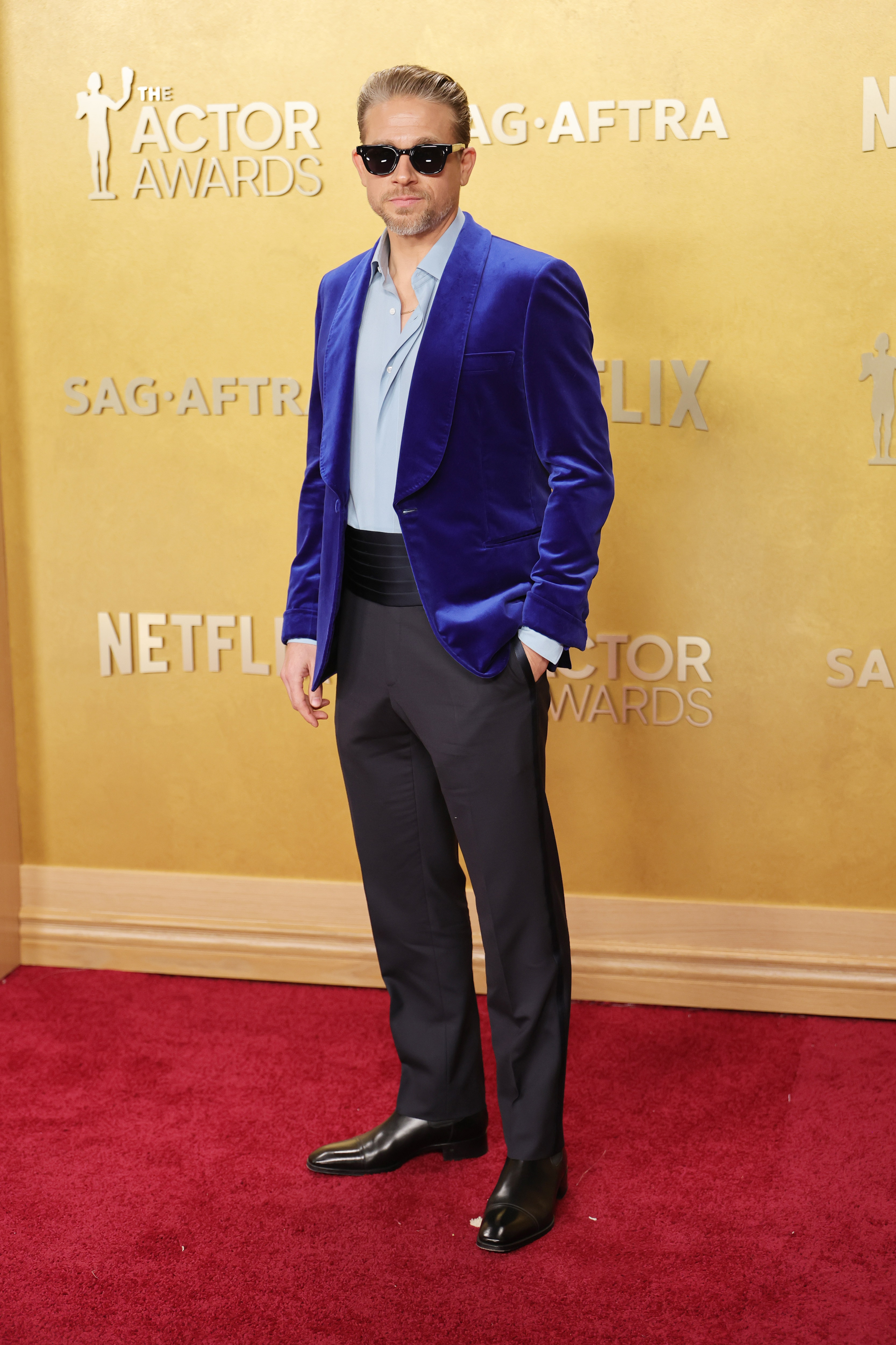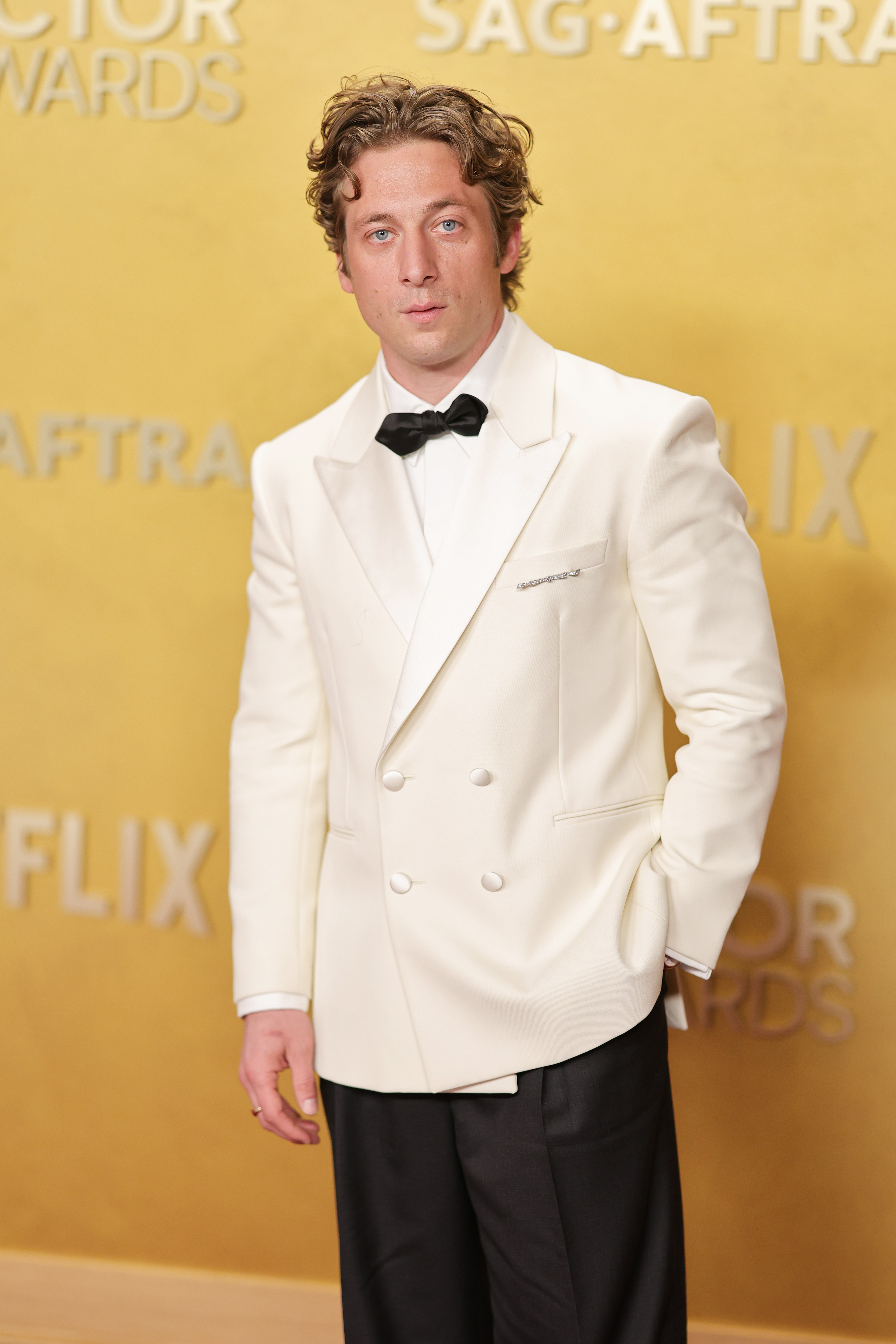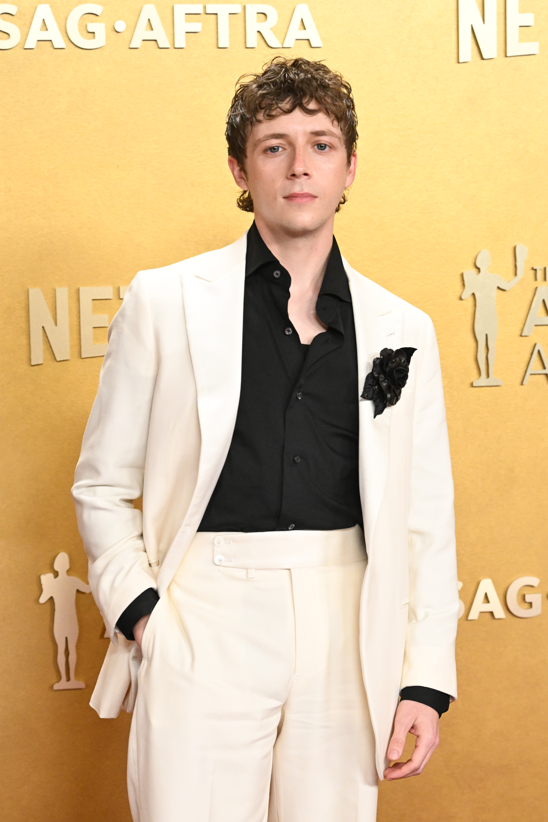 This black-on-white combo by Wyle’s The Pitt co-star Gerran Howell, however, I am a fan of. Great detailing on the trousers and jacket.