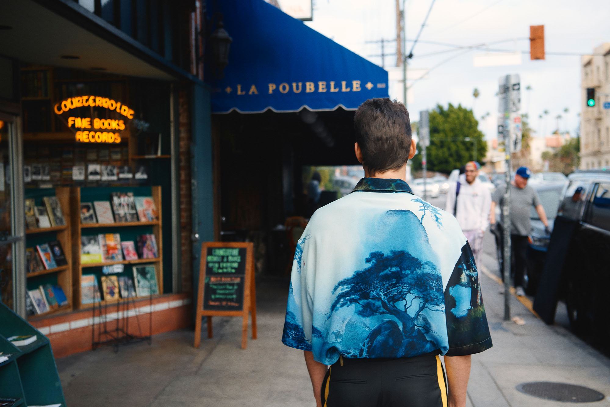 For a longtime New Yorker, Bomer couldn’t have picked a better place to land in Los Angeles than the Franklin Strip (his first apartment was a block away). The row of businesses at the foot of the Hollywood Hills — from The Daily Planet newsstand to famed coffee shop Bourgeois Pig to legendary music/lit haunt Counterpoint Records — has long been an oasis for L.A. residents looking to escape the car culture that pervades the city.