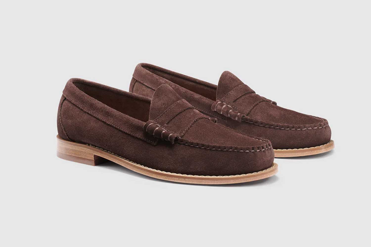 Suede leather is made from the underside of animal skin. Because it doesn’t have that tough exterior, this makes it softer than full-grain leather but also less durable. If you’ve ever seen Seinfeld, you’ll know the fabric is highly absorbent, so it can get dirty and stained easier if not properly cared for (don’t wear it in the rain or snow.) You could also pick up a bottle of suede protector spray on Amazon.