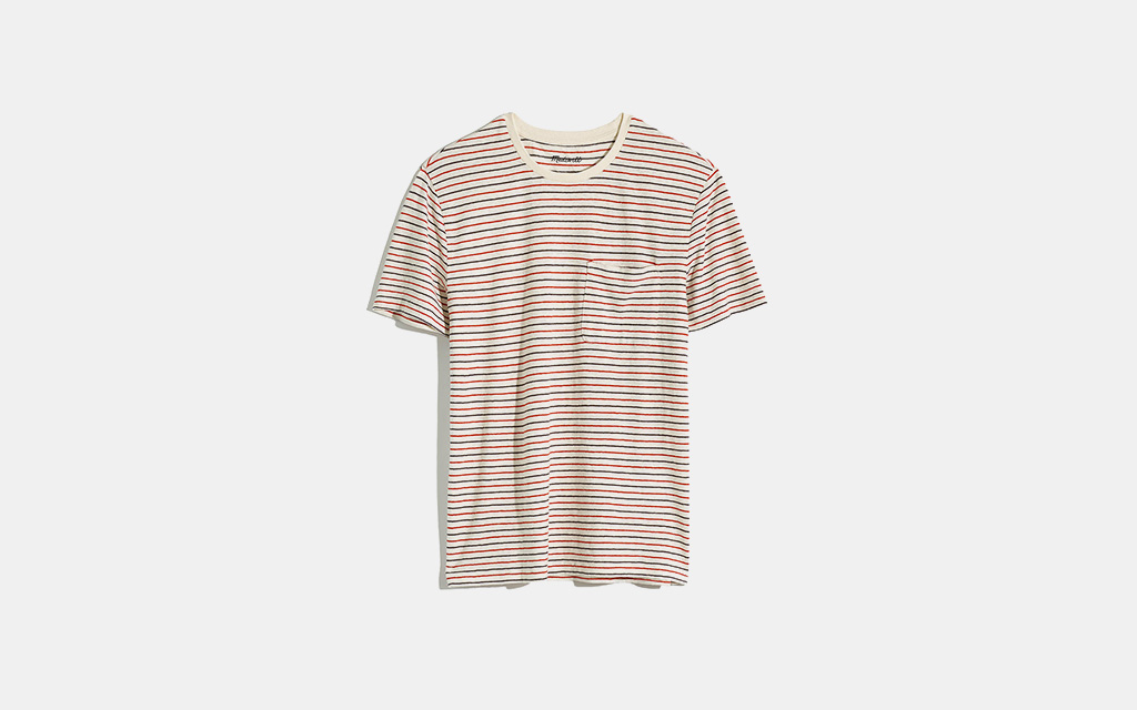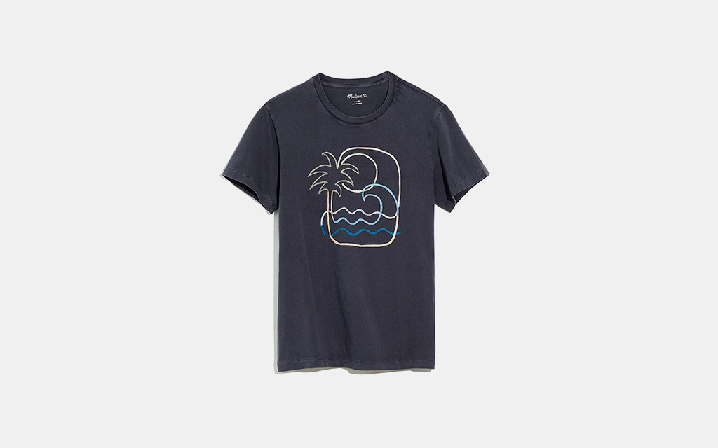 The J.Crew-affiliated label launched for men in late 2018, with a focus on denim, but has expanded into a full, laidback line since then. Think hemp sweatshirts, canvas sneakers, corduroy shorts. For this sale we’d draw your attention to the brand’s easygoing warm-weather shirts, from graphic tees with neon palm trees on them to short-sleeve button downs built for the day the bars are back up and running.