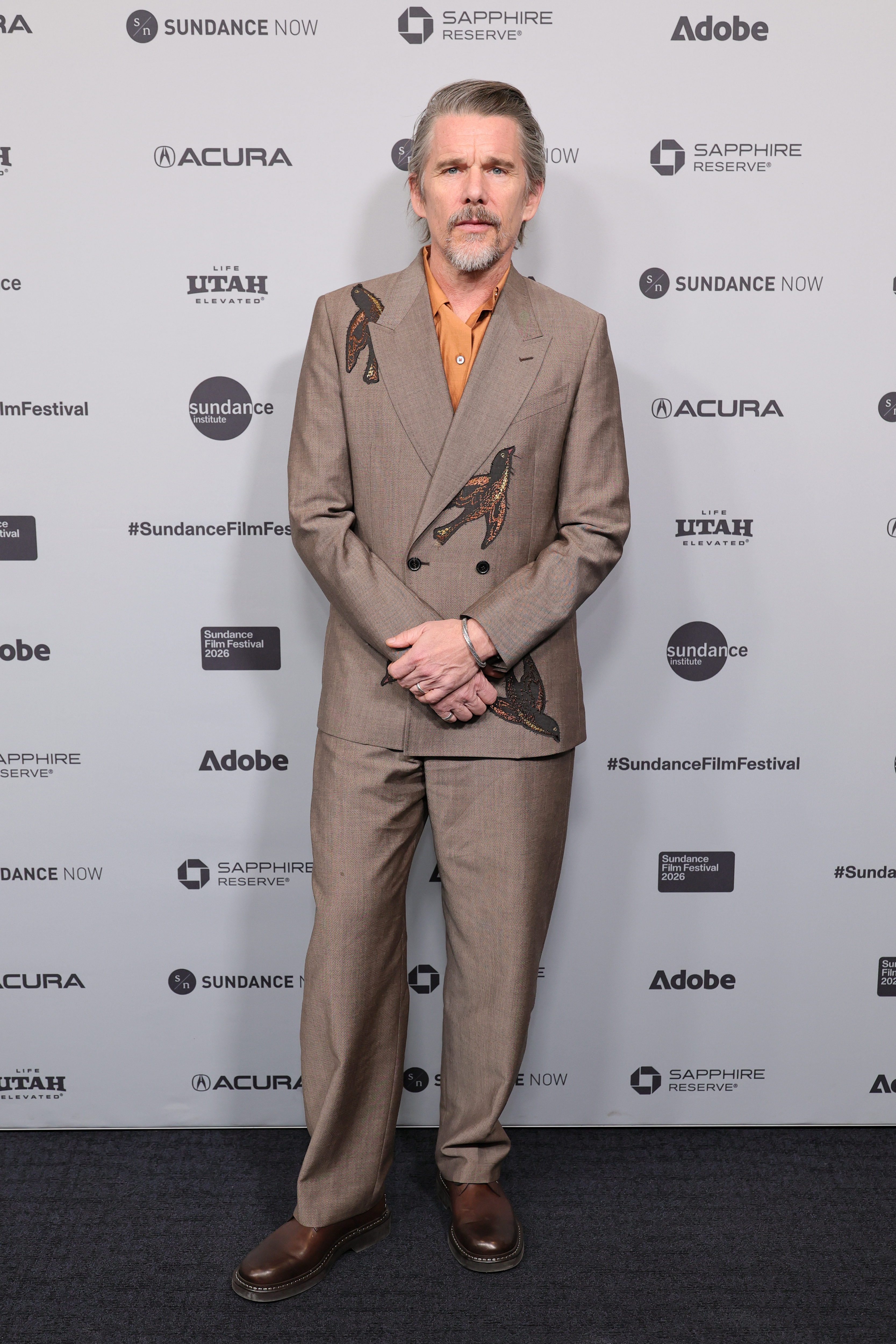 Ethan Hawke just will not quit it with the embroidered suiting (complimentary).