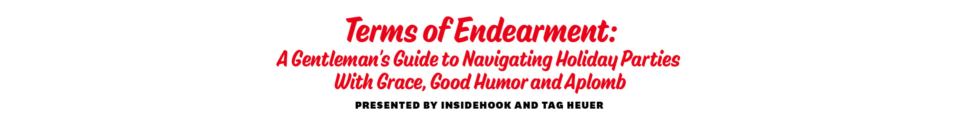 But never fear, prospective yuletide revelers, because InsideHook and TAG Heuer have teamed up on Terms of Endearment: A Gentleman’s Guide to Navigating Holiday Parties With Grace, Good Humor and Aplomb. You’re welcome.