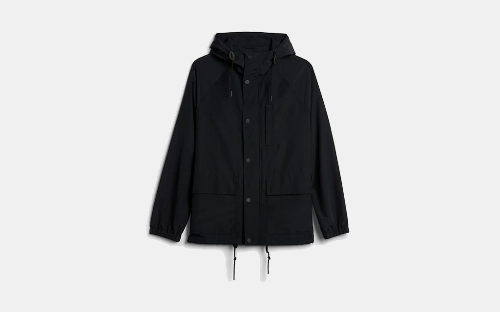 A Harrington jacket can also make a great rain jacket (if made from the right fabric). Everlane’s checks off all the boxes: it’s made from water-resistant 5 oz cotton that’ll withstand the elements, and true to Everlane’s ethos, it’s supremely simple. It also lacks the traditional plaid lining, if that’s not your thing.