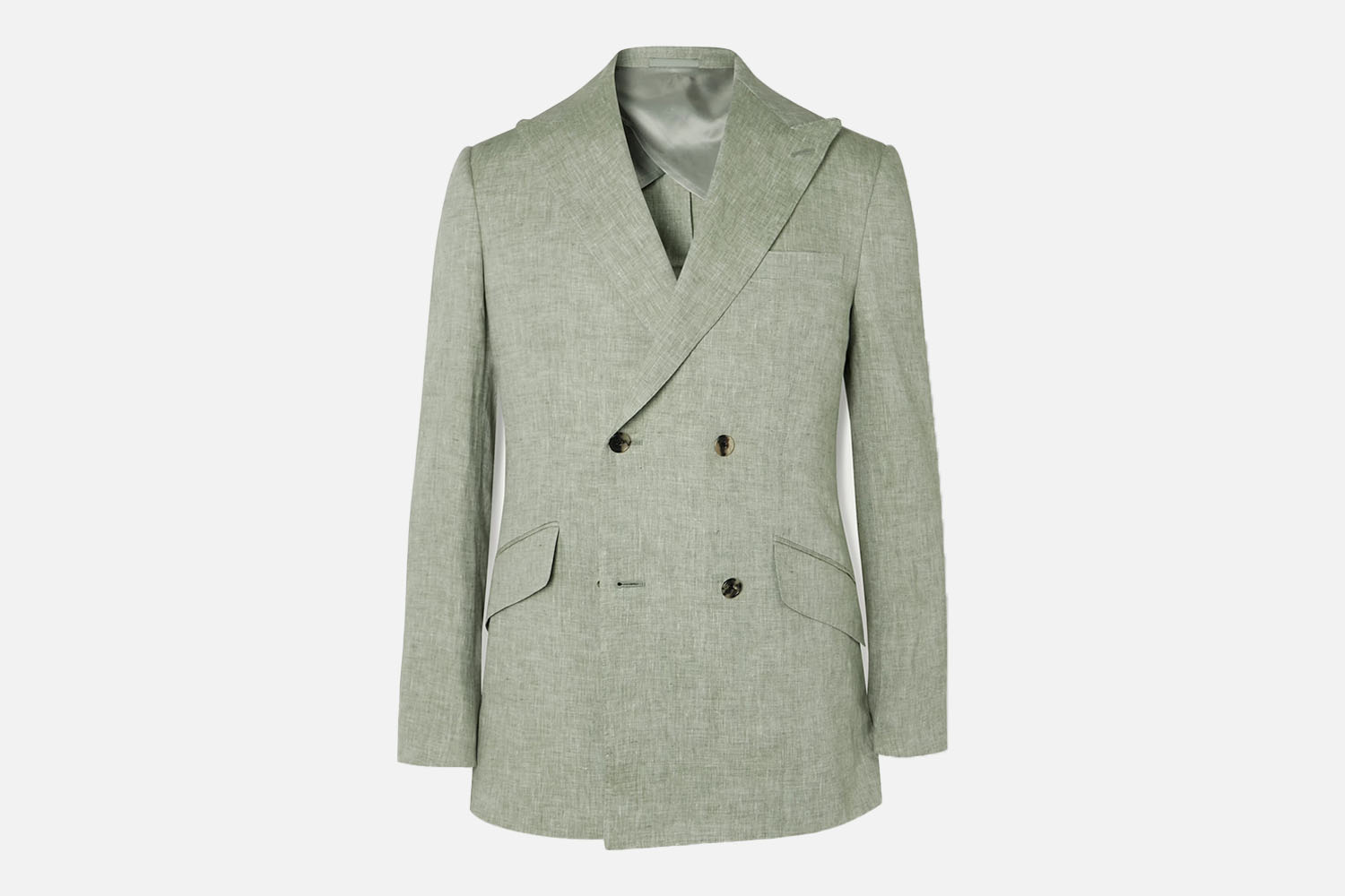 Linen suiting has a storied history dating back to the 18th century, and while we’re not suggesting you bust out the flaxen tailcoat for the July work retreat, it’s worth considering the timeless look of a relaxed, double-breasted linen suit for your warm-weather outings. The gentlemen at Kingsman cut an exceptional jacket, even without considering the eye-catching nature of their sage-hued summer suit. It’s perfectly tailored and all but certain to make an impression. Just make sure you’re dressing it up correctly — a pair of sharp George Cleverly suede loafers should do the trick nicely.