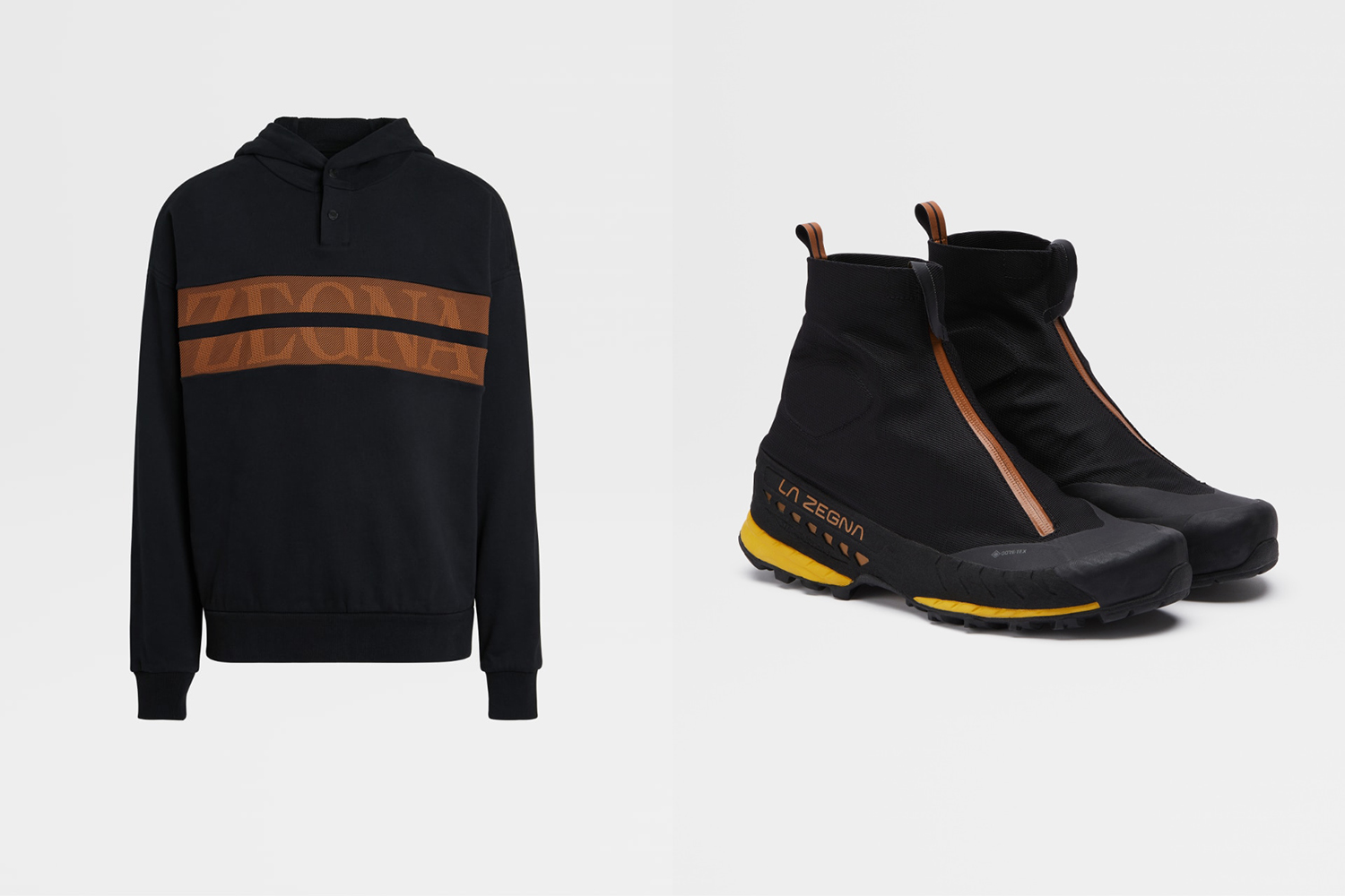 Also of note are the collaborations featured in the Outdoors Capsule: not one, but four different brands have contributed iconic styles from their archives, spanning hikers, winter sports gear and more. La Sportiva, Zia, Kask and Sigg have each offered a signature item remade in Zegna fashion, like the La Zenga TX Top Mountain Boots, and Zai High-Performance Skis.