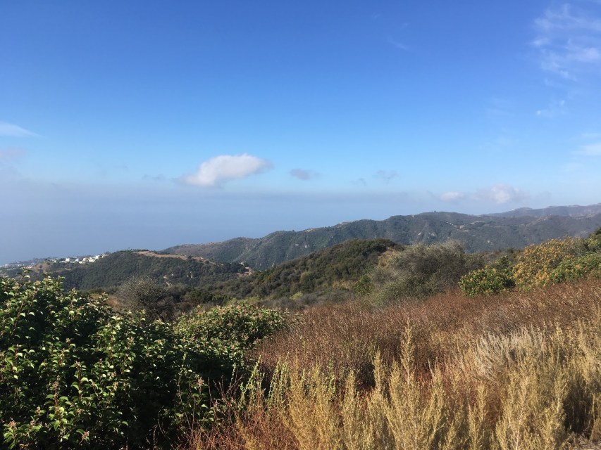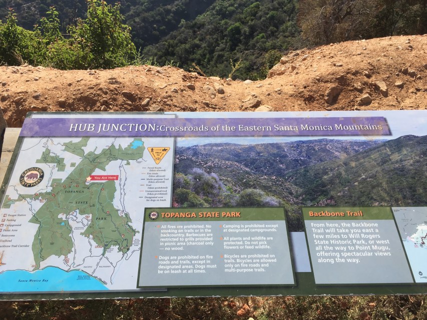 The Rivas Trail is 2.5 miles that connects the two parks, skirting the neighborhood above Palisades Village. The Backbone Trail, also about 2.5 miles, follows the Temescal Ridge above the Parks. Forgo Rivas — you won’t miss much, and there’s something nice about starting in one park and ending in another a la Lyft.