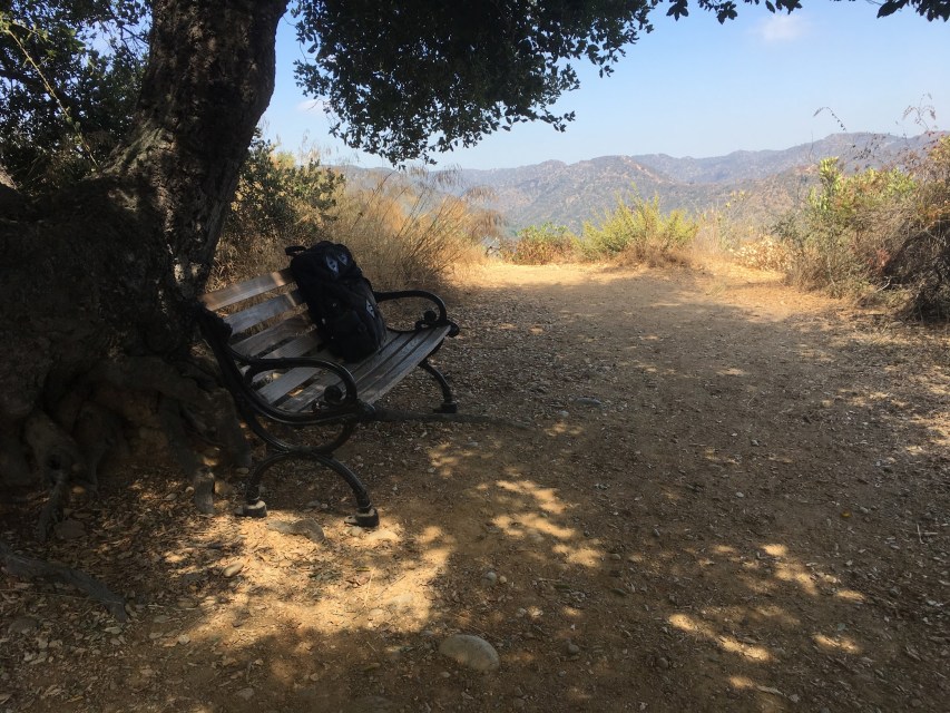 The Backbone Trail is both literally and metaphorically the apex of this hike. It hugs Temescal Peak and every switchback provides fresh vistas, ravines blanketed in coastal sage, walls of Mediterranean grass that fuzz in the breeze, and shady zones where oak, walnut and sycamore umbrella the trail. It’s hot up here, so refuel in those shady areas, like the one where a little bench sits hidden under an oak (see photos above). Use a handkerchief to dry off before reapplying sunscreen.