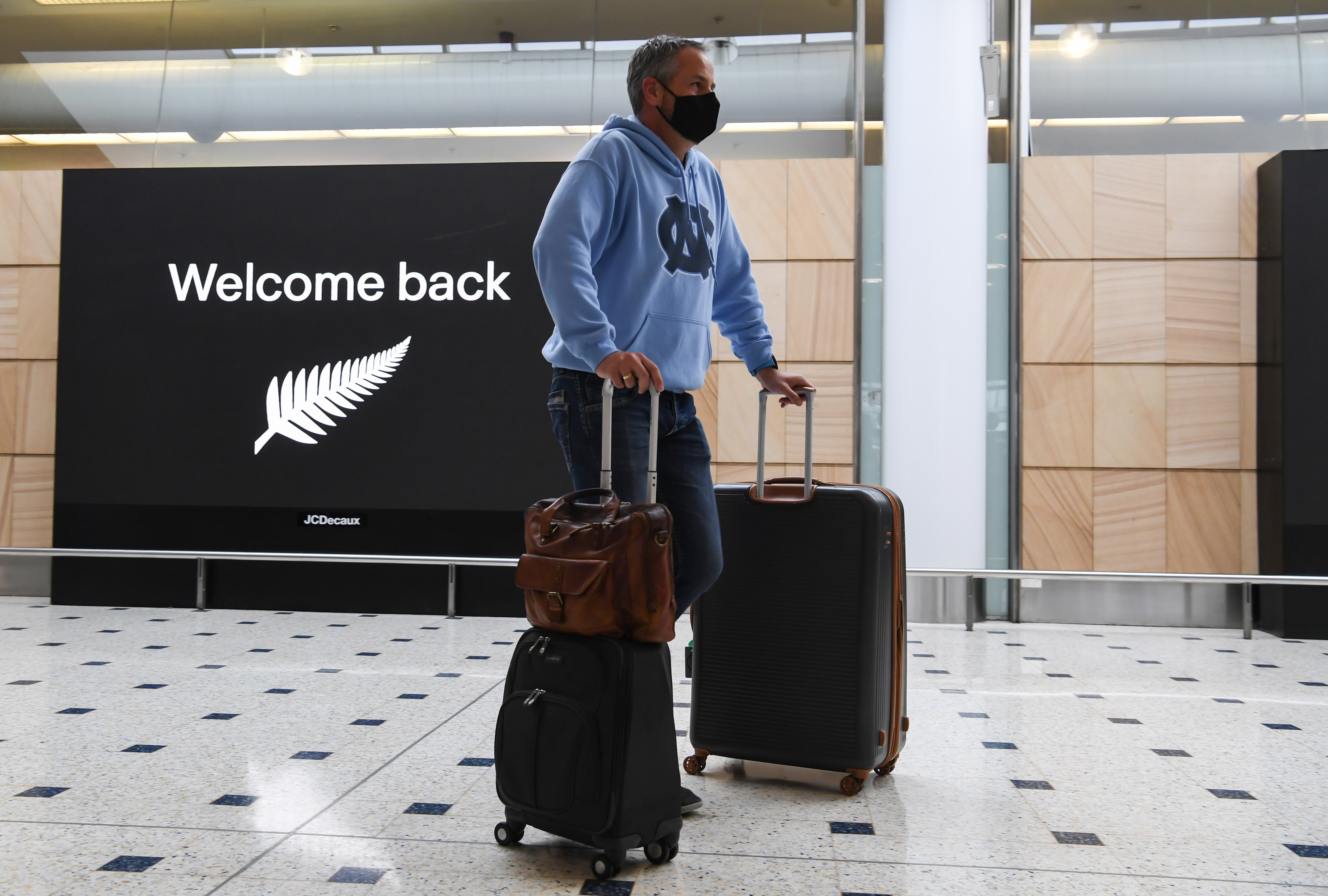 A passenger wearing a face mask arriving at Sydney's Kingsford Smith Airport after flying from New Zealand on October 16, 2020.