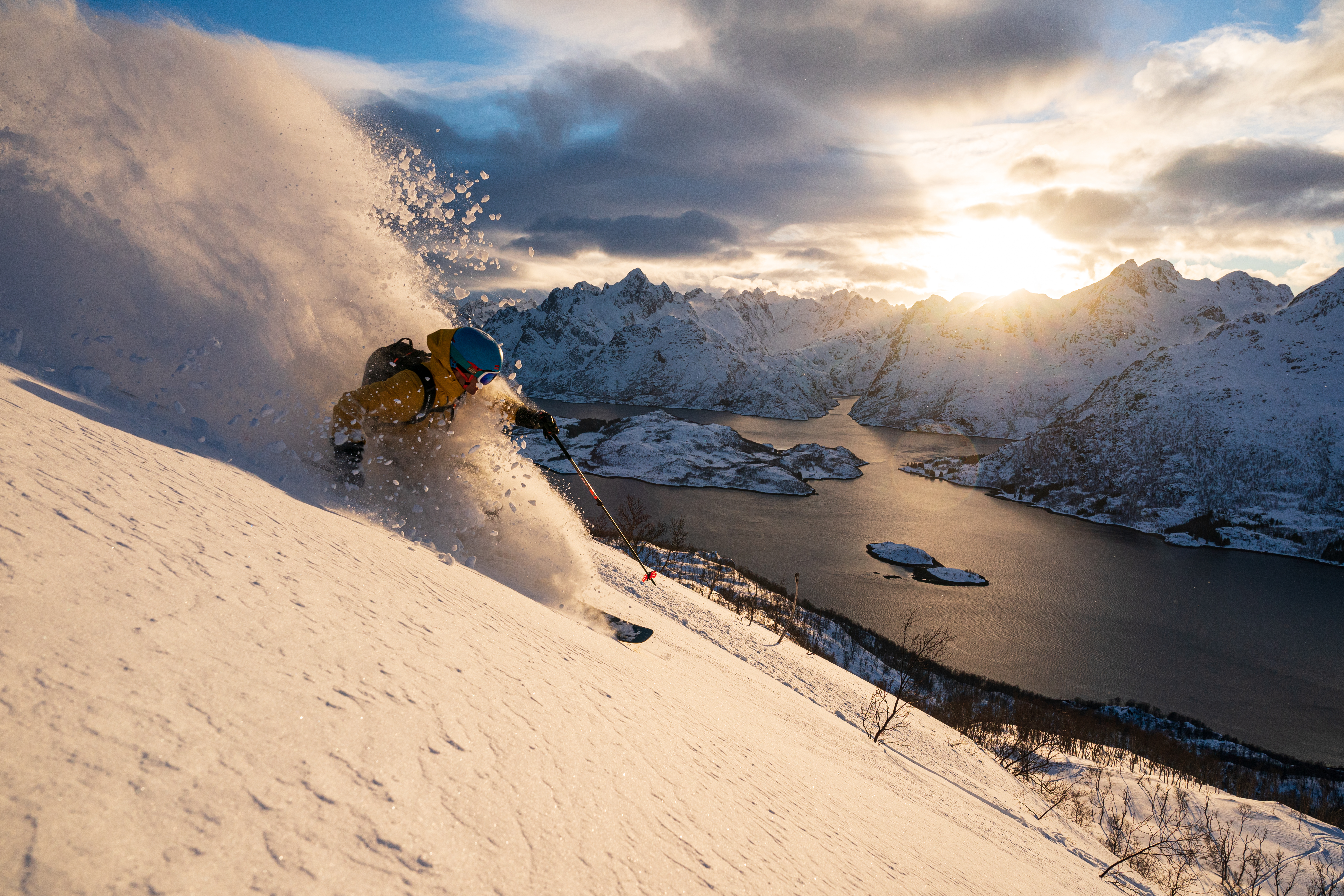 The reason we’d waited until sunset to gain the ridge — and the reason we came to Digermulen at all — was because of the backdrop. Across the sea, towering above a bay called Trollfjord, was a collection of peaks that looked as sharp and foreboding as the Himalayas. For the next half hour we leap frogged down the mountain in the kind of powder that Norway almost never gets, illuminated by a glowing orb, enveloped in all directions by Scandinavian magic. It was, as skiers say in Lofoten, fjordeous.