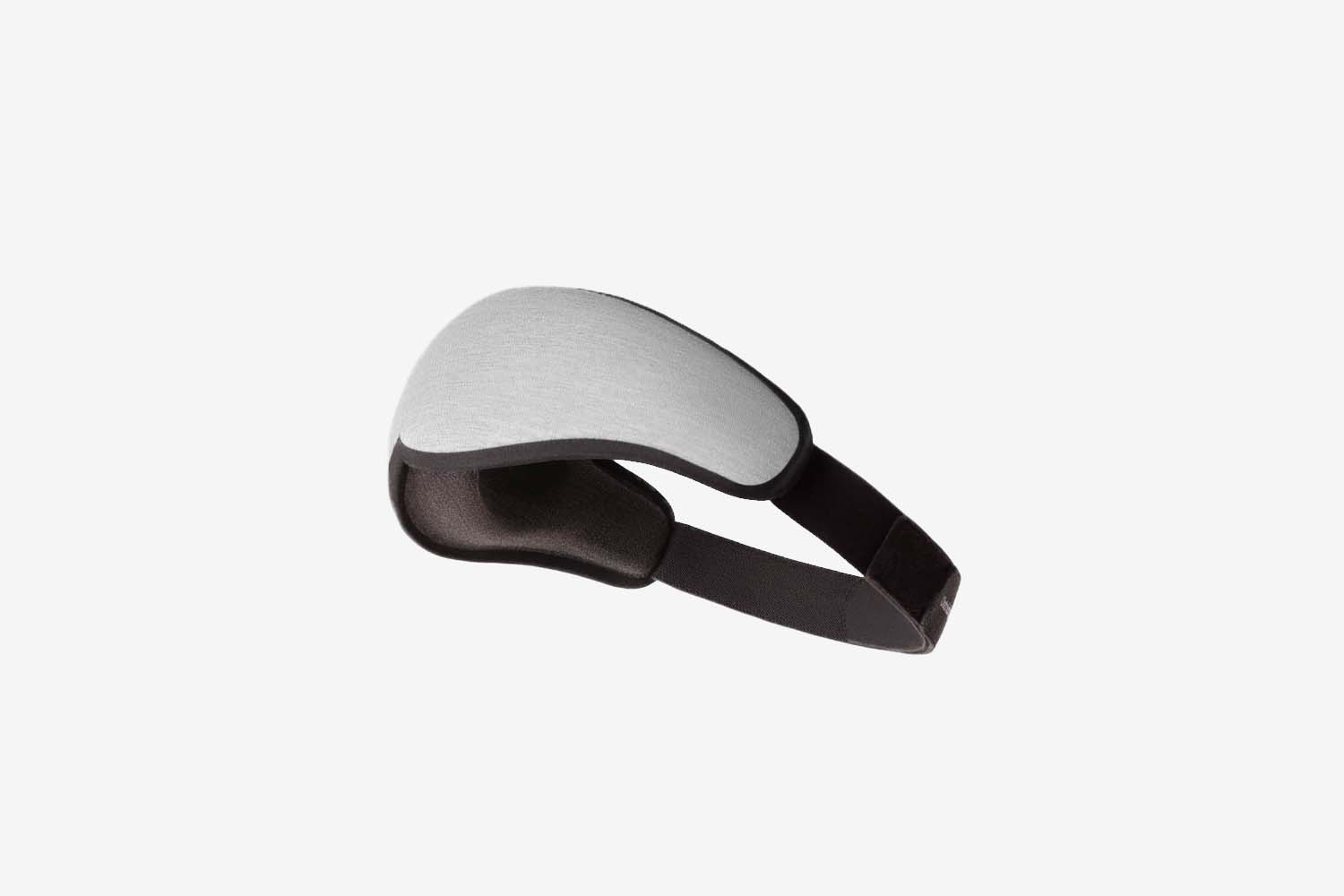 Therabody’s blackout eye mask offers three soothing vibration patterns, scientifically shown to help wearers fall asleep faster — essential for surviving a long-haul flight.