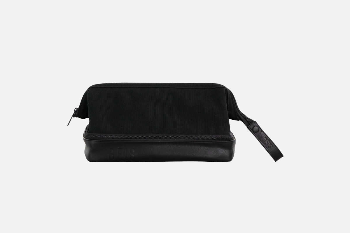 It’s hard to beat Filson’s Dopp kit for style. Made from the brand’s signature waxed canvas and lined with durable nylon, it’s rugged enough for the road, yet sleek enough to look at home on any hotel counter.