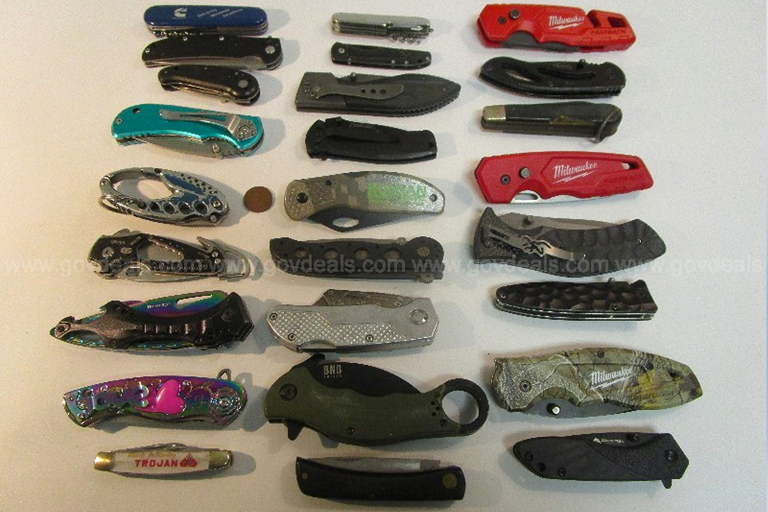 Among one of the most intriguing-to-me items listed on GovDeals was a vintage Gerber Paul knife. For a fleeting moment, I considered entering a bid with the intent to gift it to the friend who, three years ago, surrendered her pocket knife to TSA. I realized it probably wasn’t the best bang for my buck, though … two listings up from the Gerber Paul was another lot, this one for 15 pounds worth of Leathermans for just $36 more. Fortunately logic stepped in and I bought neither.