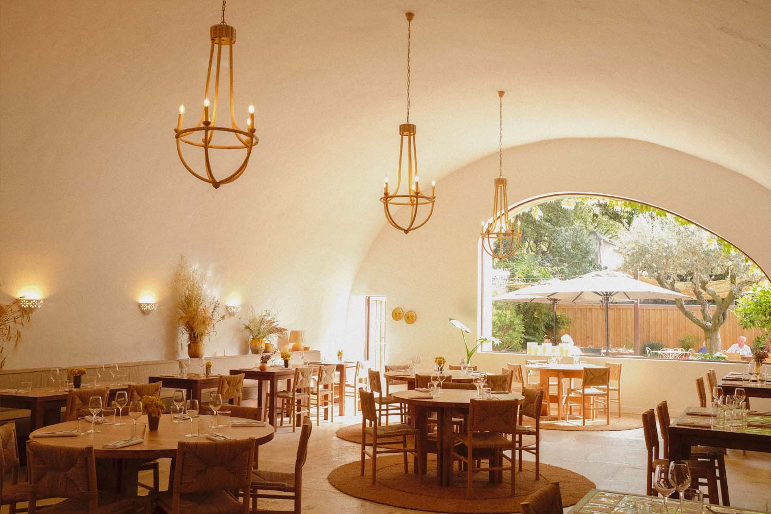 On a side street, opposite Château de Lourmarin sits an old mill turned hotel called Le Moulin. It’s hard to miss the stone facade and locals drinking coffee and wine outside on the sidewalk terrace. Inside, the cavernous dining room of the Restaurant du Moulin appointed with wood tables, ceramics and oversized light fixtures sets the tone for the artful plates of contemporary Provencale cuisine that come out of the kitchen. The garden patio in the back makes the choice of whether to dine indoors or outdoors nearly impossible.