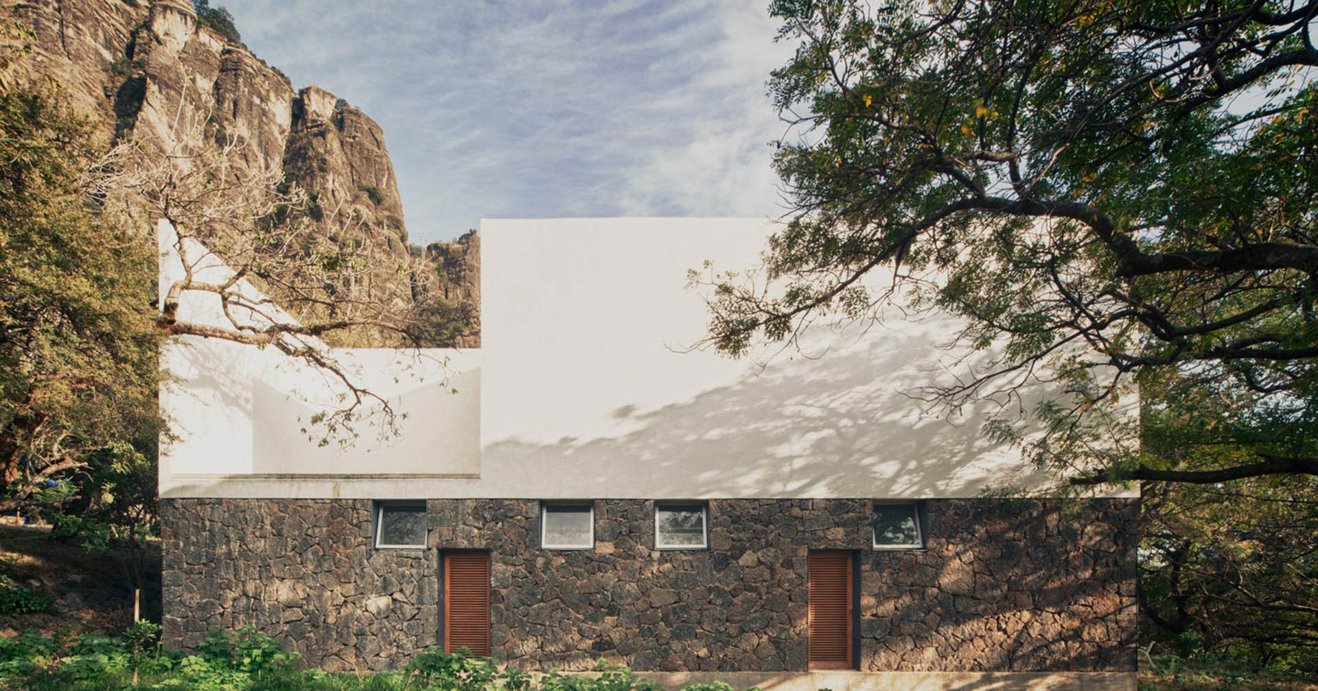Casa Meztitla, which seamlessly blends the home’s interior with the natural beauty that surrounds it outside, sits at the base of El Tepozteco on a rugged 12,460-square-foot site. The natural stone used in the home’s construction serves as stylish camouflage against the rocky surroundings, which EDAA architect Luis Arturo Garcia refers to as “context in itself.”