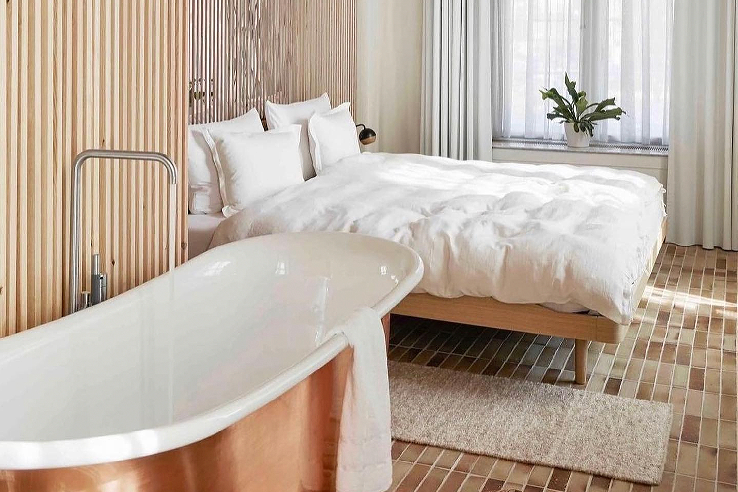 Stay: Hotel Sanders. Located just down the block from The Royal Theater, this serene retreat in the bustling center of Copenhagen is the ideal spot to begin your visit. Each of the 54 rooms at the Hotel Sanders spread across three 19th-century townhouses, radiates a mid-century Danish cool that pairs perfectly with their smiling staff. Plush lounge chairs, a complimentary minibar and a spacious bathroom with a walk-in shower allow you to recharge when you enter your room. While there are many spots to kick back inside its walls, the lush Tata cocktail bar is a must-visit. When you’re ready to venture out, ask for one of their loaner bikes.