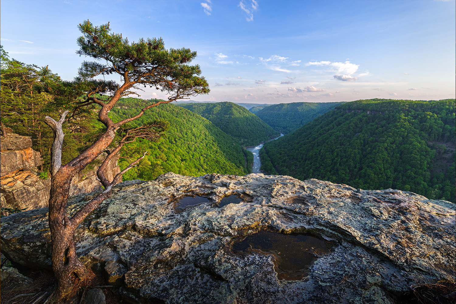 The national park has eight official primitive campsites and there are several independent campsites beyond the park. Hawks Nest State Park also has a lodge and camping. Fayetteville also has a handful of rentals if you’d rather stay downtown, like the Lafayette Flats.