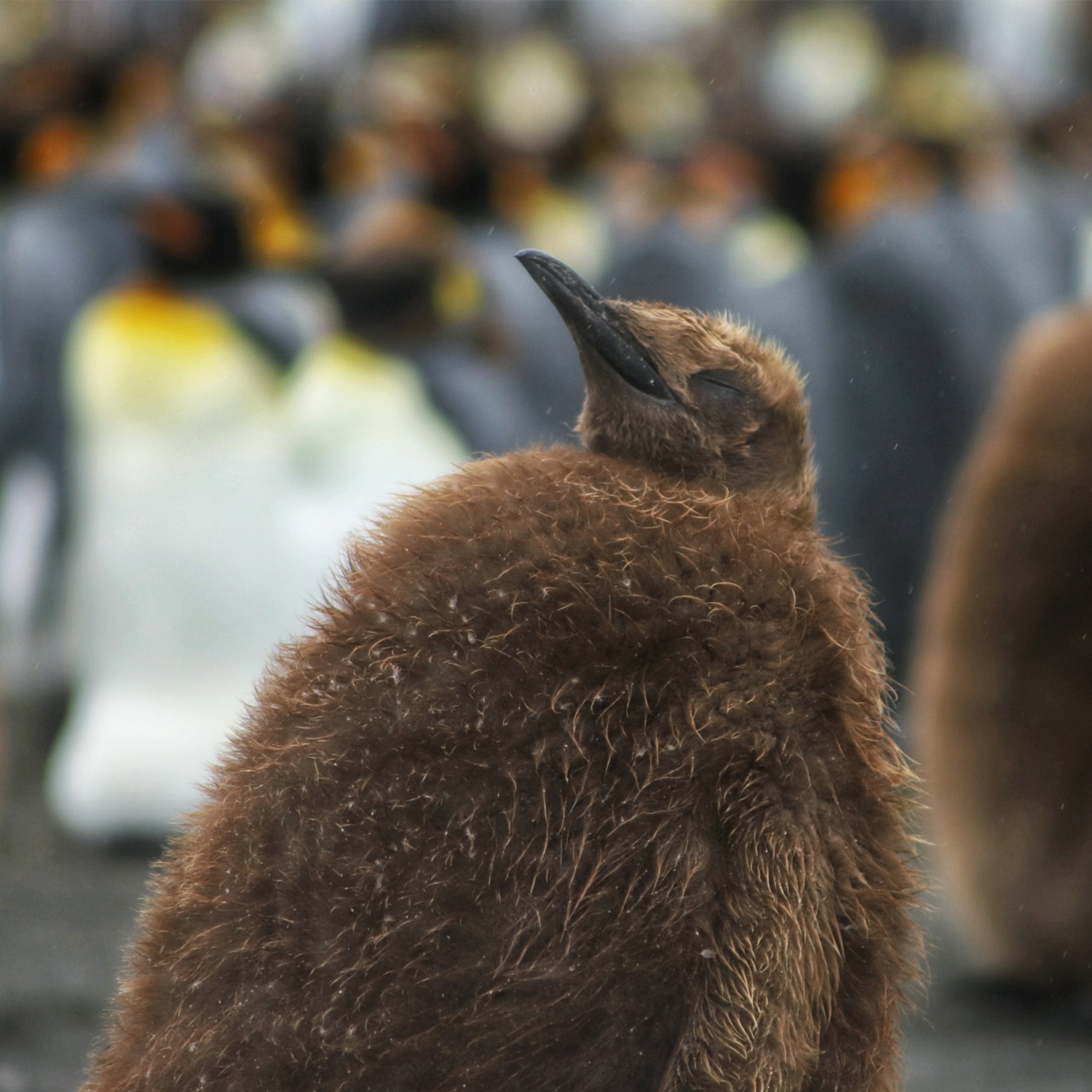 There are regal, colorful king penguins standing tall in sentry, as well as goofy gentoos, waddling to and fro in an eternal search for a hug, their flippers held out wide for someone’s, anyone’s, embrace. Their chicks are huddled together, waiting for mom and dad to return with food, while the cacophonous colonies of elephant and fur seals on the beach stir up a racket, barking for our attention.