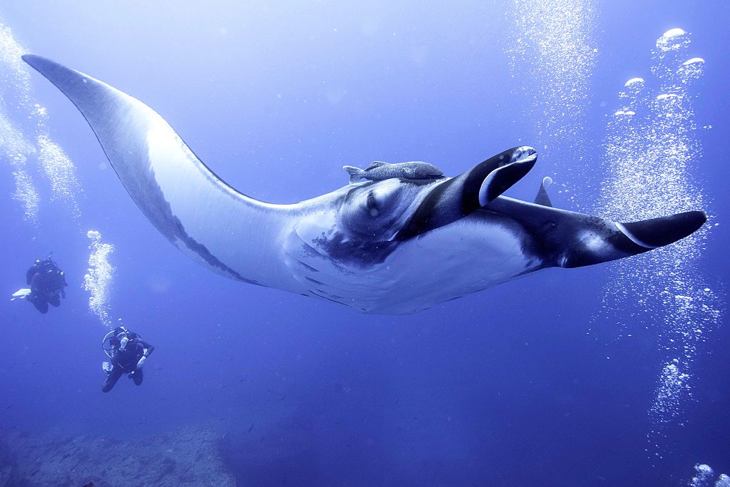 There is talk of expanding the protection area, called the tropical eastern pacific corridor, from the Sea of Cortez to Socorro and all the way south to Cocos Island, Malpelo Colombia and the Galapagos to protect the migratory species that travel between these world class undersea destinations. Scientists have already recorded silky sharks making the journey from Cocos to Socorro and a tiger shark that journeyed between Socorro and the Sea of Cortez. This area is home to over 365 species of fish and considered one of the best places in the world to see scalloped hammerheads and giant Pacific manta rays. They come to visit the cleaning stations, the watery equivalent of a day spa, where small fish are afforded an all you can eat buffet of parasites. Chevron and black mantas are the two types most commonly found in these brilliant blue waters. Both look like military stealth bombers with distinguishing patters on their bellies that identify each individual like a human fingerprint. Comically, mantas apparently like air bubbles … on their privates. “Bubble jobs” is what the scientists call it…disproving once and for all that studious types don’t have a sense of humor.