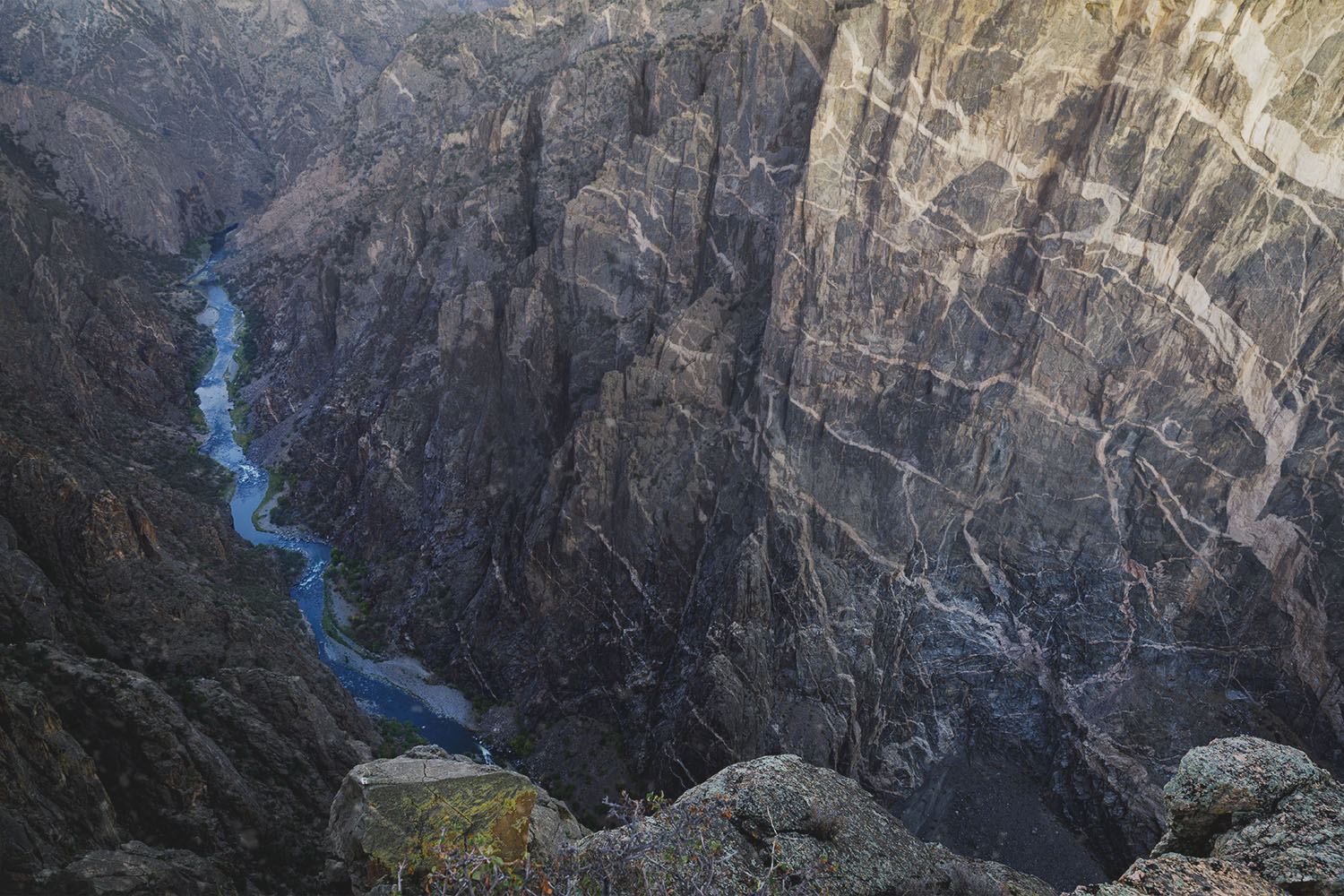 Drive along the south rim. The main entry point for the park, and the most accessible for visitors (thanks to its proximity to Montrose), South Rim Road zigs and zags for seven miles along the canyon edge, dotted with numerous scenic overlooks and show-stopping views. Stop at Painted Wall for a particularly awe-inspiring look at Black Canyon’s singular geology. The park earns its ominous name from its jet-black metamorphic rock, striated with color from minerals that formed igneous rock as a result of magma radiating through layers of schist and gneiss. Towards the entrance of the park, there’s also a route that goes down to the canyon floor along East Portal Road. But be warned, with hairpin turns and a 16% grade, it’s not suitable for most RVs or larger vehicles — or folks prone to carsickness.