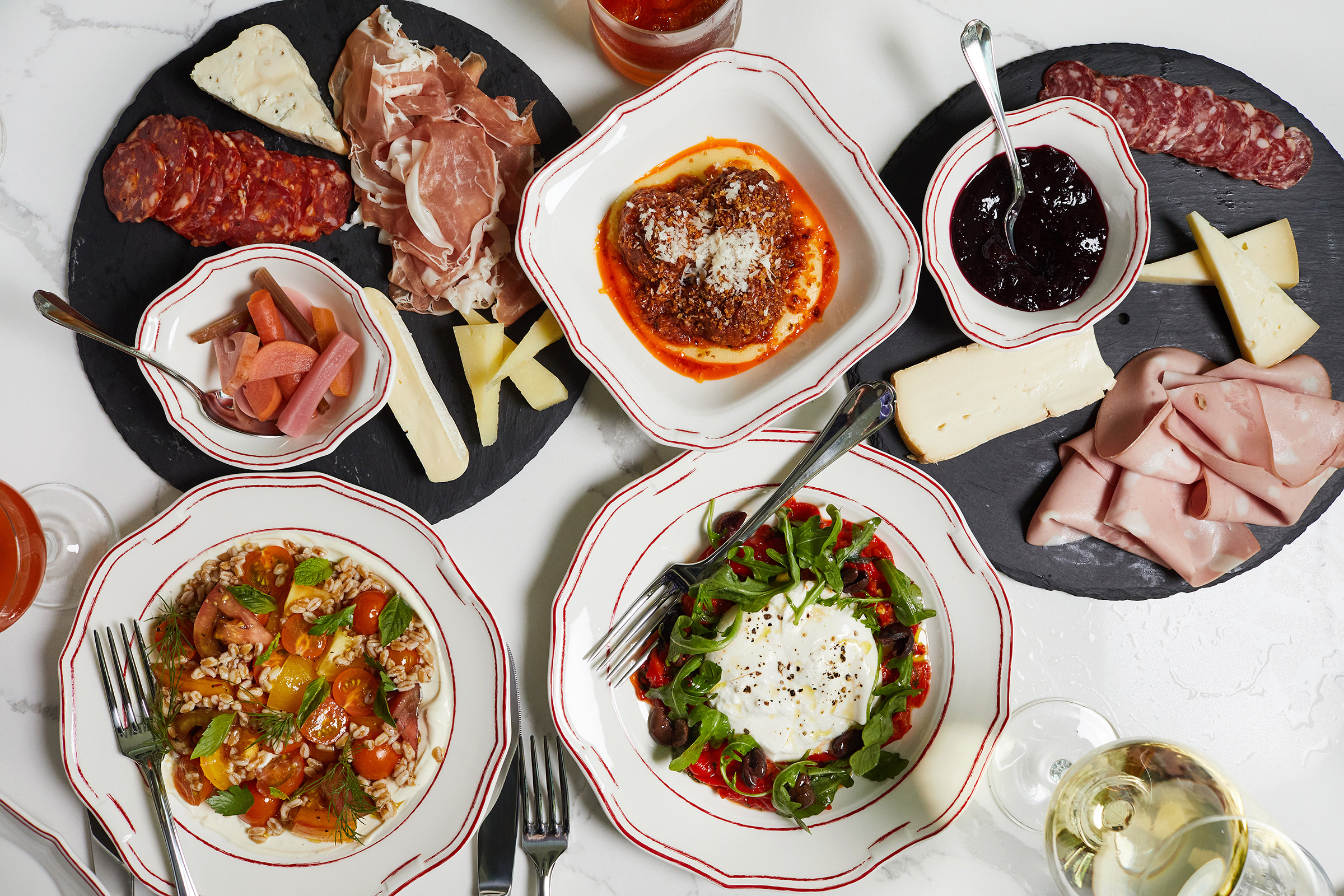 You’re dining on… salads like heirloom tomatoes with farro and whipped ricotta and sandwiches like an Italian-accented tuna — ideal for a midweek lunch. More copious plates perfect for dinner include Amish chicken Milanese or eggplant parm. And it wouldn’t be Officina without Stefanelli’s famous pastas: tagliatelle is paired with local mussels and chili, while ravioli is filled with ricotta and tossed with a sauce of corn, anchovy and basil. Be sure to snag an Italian cocktail like a kickass negroni or a vodka-spiked Sicilian lemonade.