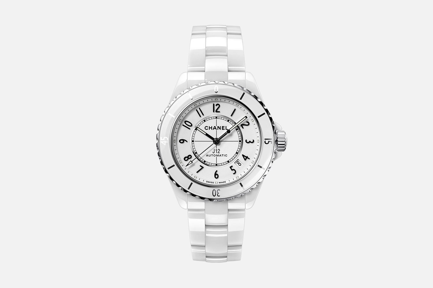 Chanel was way ahead of the modern ceramic watch curve, having released its J12 way back in 1999. This newer version — powered by the brand’s Caliber 12.1 produced at Kenissi — is a gleaming, white-hot take on typical dive watch aesthetics. Between its white ceramic and steel case, matching white multi-link bracelet, white bezel insert and white dial with black indices, it’s a beautiful, clean design that would look perfectly at home in the Cyclades in mid-July.