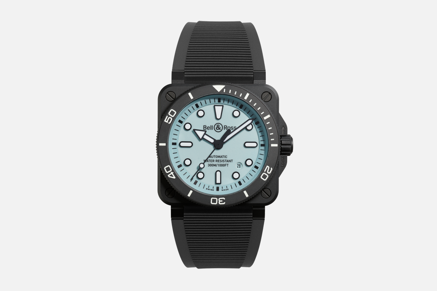While Bell & Ross may be best known to many for its instrument cluster-inspired pilot’s watches, its BR-03 dive watches are just as striking, robust and downright cool. Perhaps coolest of all, however, are the “Full Lum” references such as this one: measuring 42mm, its dial is completely coated in pale-blue Super-LumiNova and features applied indices with white Super-LumiNova. Handsome as heck and wildly legible, it’s a unique tool watch that straddles several worlds.