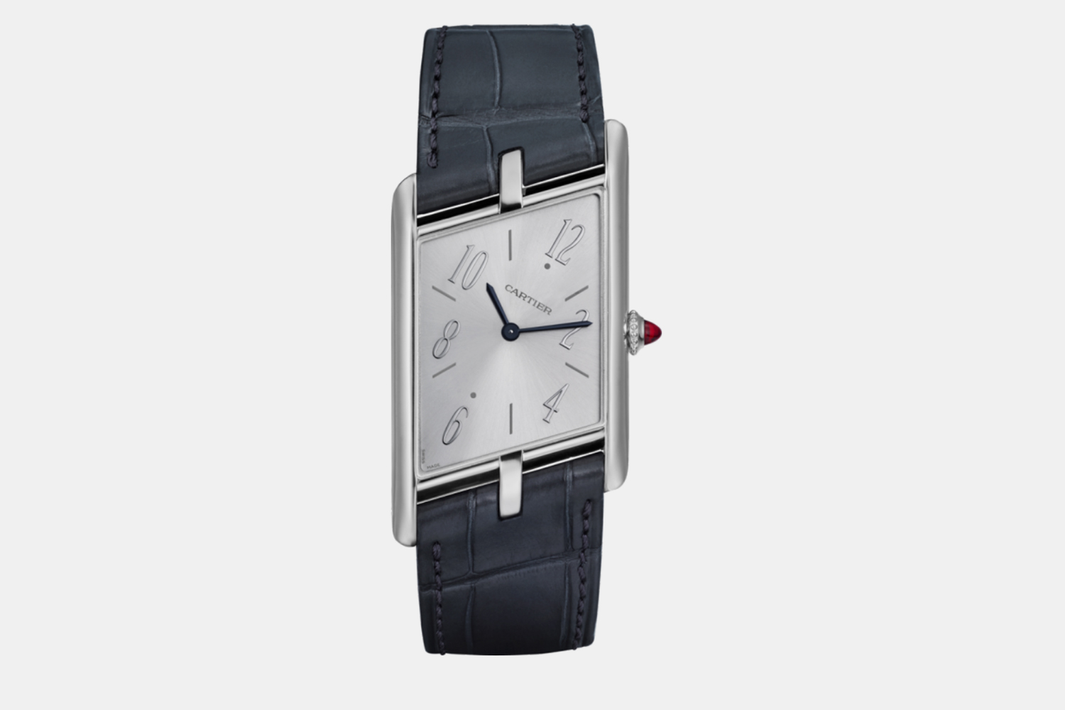 Faithful reissues of watches from their archives is certainly nothing new to Cartier, who created the Prive Collection to do just that in 1998. During the decade that followed, several rare designs were given a new limited-edition life and since then several of them — notably the Crash and Tonneau — have been given more permanent places in the Cartier lineup. The latest reintroduction is the Tank Asymetrique. While the design of the watch, first introduced in 1938, may seem strange, there is a method to the madness. When one glances at their wrist, the body’s natural propensity is not to hold their arm at the 90 degree angle one requires to read a traditional watch dial, but rather at something more resembling 45 degrees. This also happens to be the tilt at which most hold their arm when operating a steering wheel. The shape of the Tank Asymetrique was designed for a customer who desired a watch which was easier to read in either of those positions, and the result was the quirkily shaped case we now have before us again, now limited to 100 pieces each in white gold, yellow gold, and platinum.
