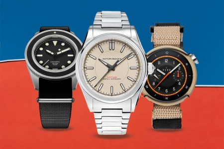 In the 1960s, the “super compressor” watch case was devised as a means of improving watertightness — as a diver descended, the water pressure would actually increase the case’s water resistance. Though simple screw-down crowns and casebacks proved to be better solutions for water resistance, the super compressor’s unique profile — with its dual crowns controlling an internal rotating bezel in addition to winding/setting — made for a lovable aesthetic. The new Benrus Ultra-Deep reimagines one of the classic Super Compressor designs in a highly faithful reissue, complete with a 36.5mm stainless steel case, an automatic Swiss movement from Soprod, and 200m of water resistance. With its included stainless steel Jubilee-style bracelet and blue nylon NATO strap, it’s a heck of a bargain at $1,095.