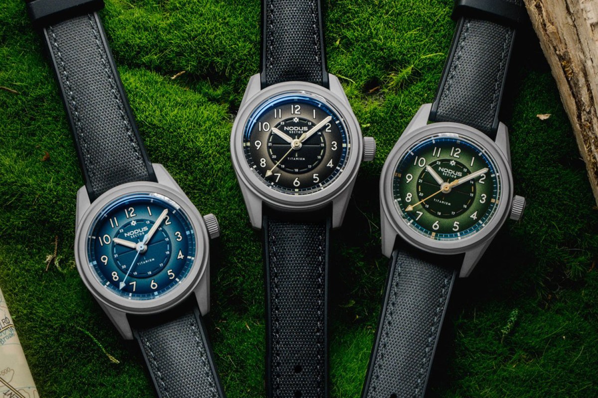 In late 2024, American microbrand Nodus overhauled the case architecture of its beloved Sector field watch. Now, it’s offering it in lightweight titanium — and pricing it at just $500. Available in Marina (blue), Sequoia (green), and Shale (black-grey) colorways, it features a dial inspired by both vintage military watches as well as “sector” dials more generally, i.e., those in which the dial is divided into different “sectors” featuring different colors, printing or finishing. The raised central section features a 24-hour scale, while an outer matte-metallic section features a conventional 12-hour scale in luminescent Arabic indices complemented by an outer minute track and lumed sword hands. Powered by the TMI NH38 automatic movement and paired to a black or grey hybrid TecTuff rubber strap with a titanium buckle, the Sector II Field Titanium is truly a tremendous value.