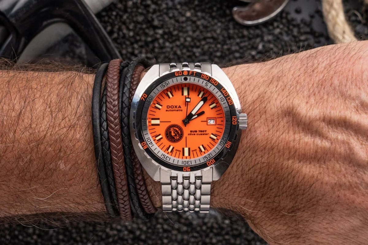 In celebration of what would have been author and explorer (and eternal Doxa evangelist) Clive Cussler’s 94th birthday, the brand has released the SUB 750T Clive Cussler dive watch. At 45mm in diameter, it’s not a small piece — but a height of roughly 12mm helps it wear much more comfortably than one might imagine. The orange dial features the logo of Cussler’s NUMA (National Underwater and Marine Agency) organization, an underwater exploration nonprofit founded by the author in 1979. Boasting Doxa’s famous “no-decompression” bezel and beads-of-rice bracelet, the SUB 750T Clive Cussler is produced in a run of just 94 pieces at a price of $2,990 — pretty good for a serious tool watch with a water resistance of 750m.