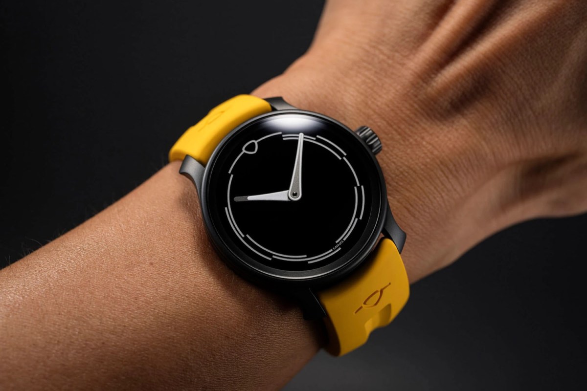 While Ming Thein’s eponymous Malaysian brand makes numerous complicated, high-end models whose prices may or may not cause your eyes to water, it likewise produces wildly cool tool watches that are stickered much more affordably. The new 37.02 Monolith is one such watch: DLC-coated in black but paired to a bright-yellow FKM rubber strap, this Kuala Lumpur-designed, Swiss-assembled watch carries a cool sapphire dial with laser-cut channels filled with Ming Polar White lume and a handset filled with Super-LumiNova X1 Blue. Sized at 38mm wide and just 11mm tall, it wears easily and comfortably, and is powered by the Sellita for Ming SW300.M1 with skeletonized anthracite bridges, plates and winding rotor.