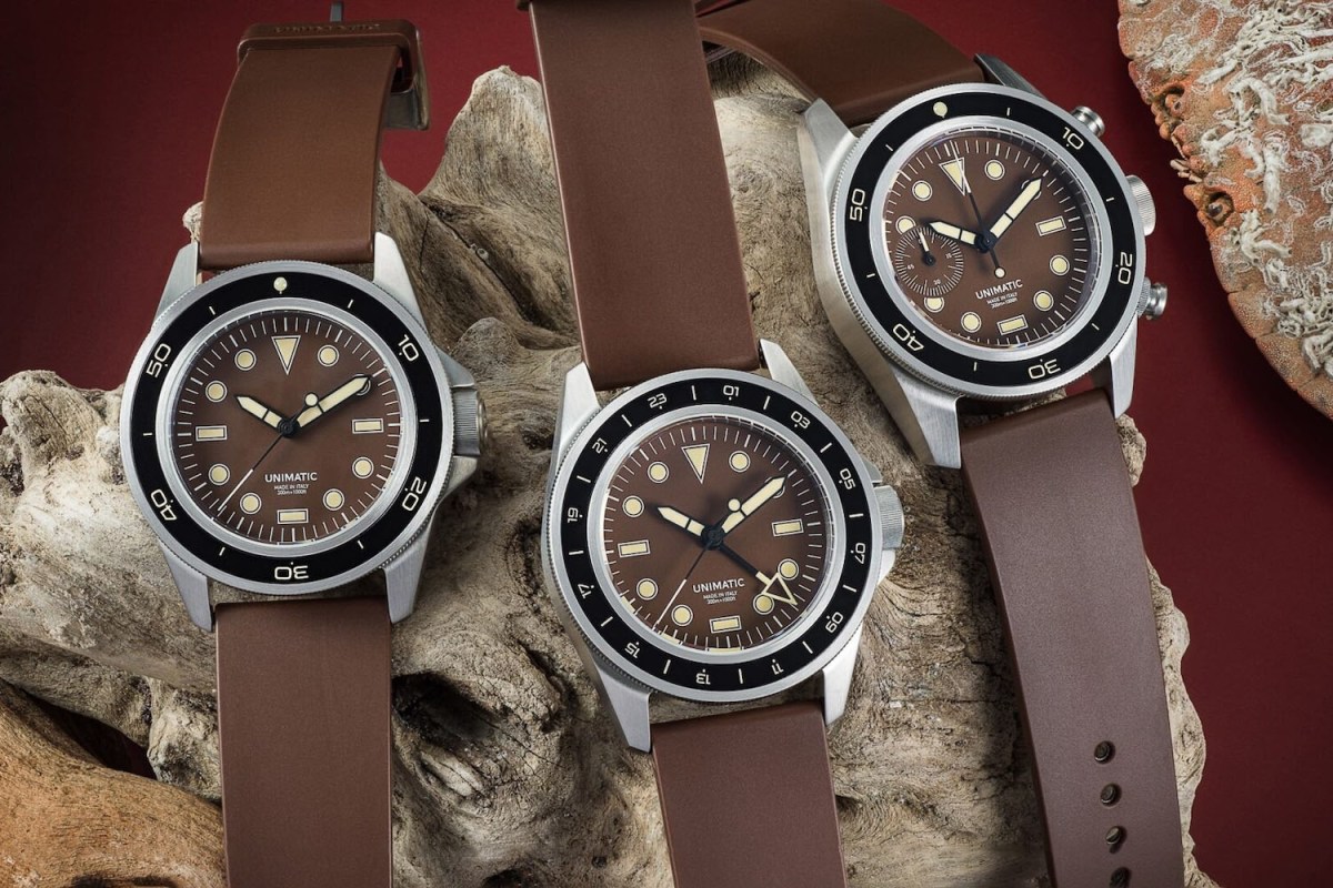 Rather than a single watch, the new Unimatic Diving Heritage is actually a full collection. The U1 diver, U1-GMT and U3 chronograph have each been produced in three colorways — blue, brown and black — in runs of 300 pieces each and paired to matching rubber straps. Powered by automatic (diver and GMT) and meca-quartz (chronograph) movements, the watches feature unidirectional bezels with inserts using Unimatic’s still-new typography, plus dials with Old Radium-style luminous indices and handsets. Affordable, handsome and undeniably useful, the Unimatic Heritage Collection models are perfect summertime pieces, though their use should extend all year long.