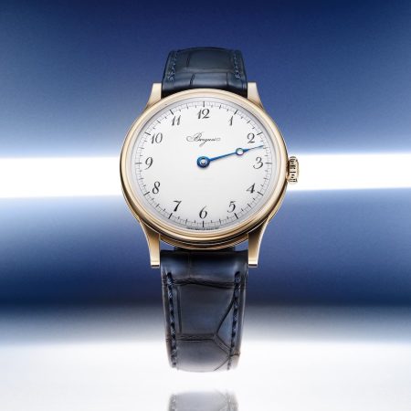 A fresh model from everyone’s favorite Bauhaus-inspired brand, the NOMOS Minimatik is a simple, hand-wound dress watch in a 39mm case powered by the brand’s DUW 4601 movement. Available in three versions, each features a classically shaped round case with a slime profile, a curved sapphire crystal, and long, gently curving lugs. The dial, available in two silver-plated iterations or a handsome deep-blue version, featured a gold-framed date window at 3 o’clock, an outer open minute track, Arabic and dot indices, a large sub-seconds display, and a handset in either rhodium or gold plating. (The dial, which is itself gently curving, seems to disappear into the case flanks in a neat trick of the eye.) The fine finishing of the Calibre DUW 4601, meanwhile, can be admired via a transparent caseback.