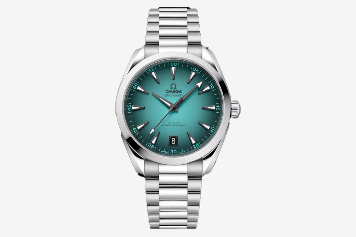 There are few watches more suited to elegant everyday wear than the Omega Seamaster Aqua Terra. With its ample water resistance, good looks and Co-Axial Master Chronometer movement, the Aqua Terra — in any guise — is one of those perennial candidates for the mythical “one-watch collection.” A new lacquered turquoise iteration with a black gradient effect, grey PVD faceted hands and hour markers, and an outer minute track in bright turquoise is unusual enough to be striking but subtle enough to work as an elegant timepiece in a more formal setting. Powered by the brand’s Calibre 8900 movement and paired to a matching brushed and polished steel bracelet, it’s a solid use of $6,600.