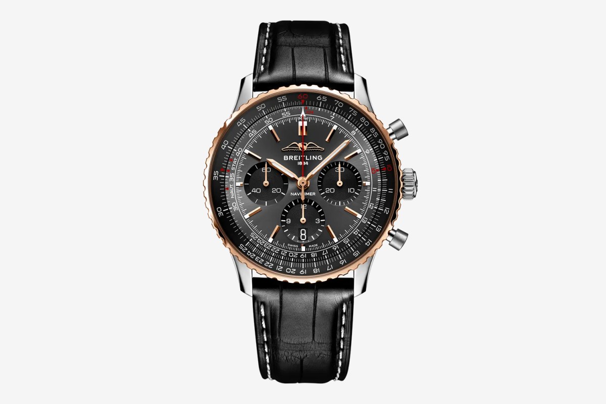 It’s tough to argue with a cool limited-edition version of one of the world’s most famous chronographs: The Breitling Navitimer B01 Chronograph 43 North American Limited Edition, limited to 300 pieces, mixes a 43mm stainless steel case with an 18K red gold bezel, an anthracite dial with black subdials, the model family’s famous slide-rule bezel, and gold baton indices and sword hands. Functioning as its power plant is the Breitling Caliber 01 automatic manufacture movement with 70 hours of power reserve, while its caseback is engraved “ONE OF 300” and “LIMITED EDITION.” Paired to a simple black alligator leather strap, this handsome take on the Navitimer is only available in American and Canadian Breitling boutiques.