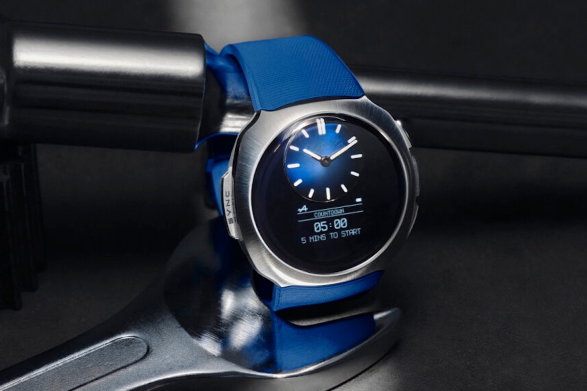 Never one to rest on its laurels, Moser has developed its first-ever smartwatch in collaboration with the pit crew of Alpine Motorsports, whose F1 team the brand sponsors. Dubbed the Streamliner Alpine Mechanics Edition, it borrows its case shape from the brand’s mechanical Streamliner collection but adds a host of digital features that should come in handy during a race: a “Race Mode” with countdown timers and alerts, a split-seconds chronograph with resolution to 1/100th of a second, a GMT function and a perpetual calendar are all present and accounted for. Furthermore, its digital dial retains the brand’s signature fumé appearance, while the battery life extends to a full year in time-only mode. But it doesn’t race alone: it’s only available as part of a pair with the mechanical Streamliner Alpine Drivers Edition.