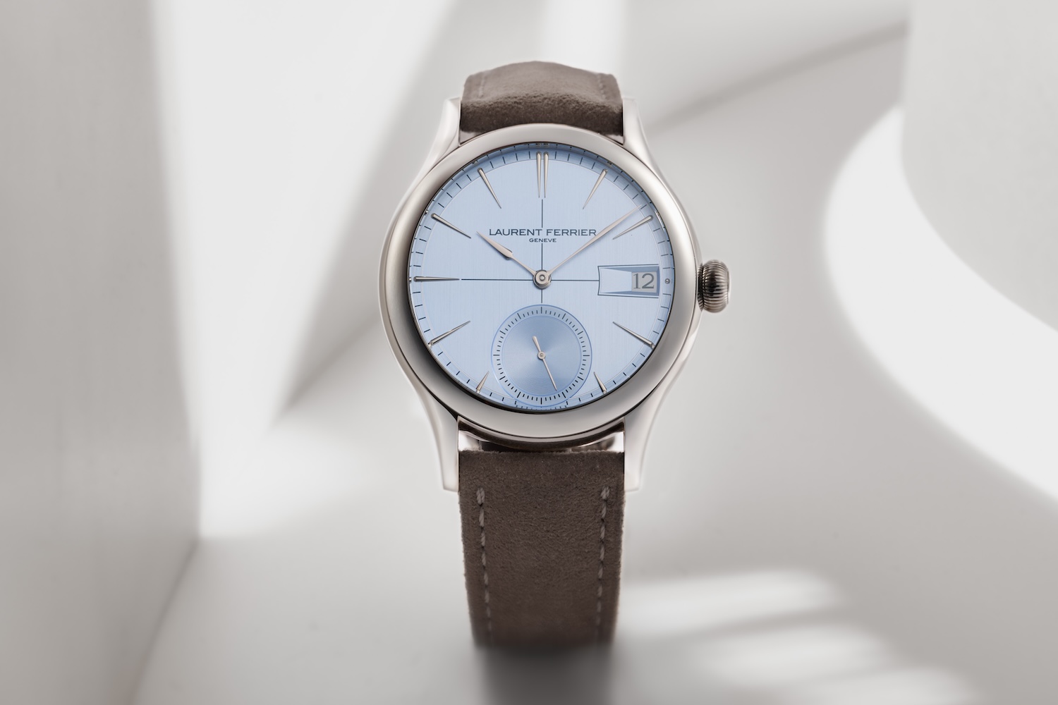 Very few watchmakers achieve the unique balance of classical influence and modern technology that results in a truly remarkable piece of haute horlogerie. Laurent Ferrier — who spent many years as the technical director at Patek Philippe — is one such watchmaker. His Classic Auto Horizon, with its round 40mm case and beautiful date window, is a masterclass in restraint. A new version with a horizon-blue dial expands the product family and, happily, occupies a place in the brand’s permanent collection: Its sky blue color, rendered with translucent lacquer over a base with a silver galvanic layer, is a work of art, as is the micro-rotor-equipped Calibre LF270.01, whose exquisite finishing is visible via a transparent caseback.