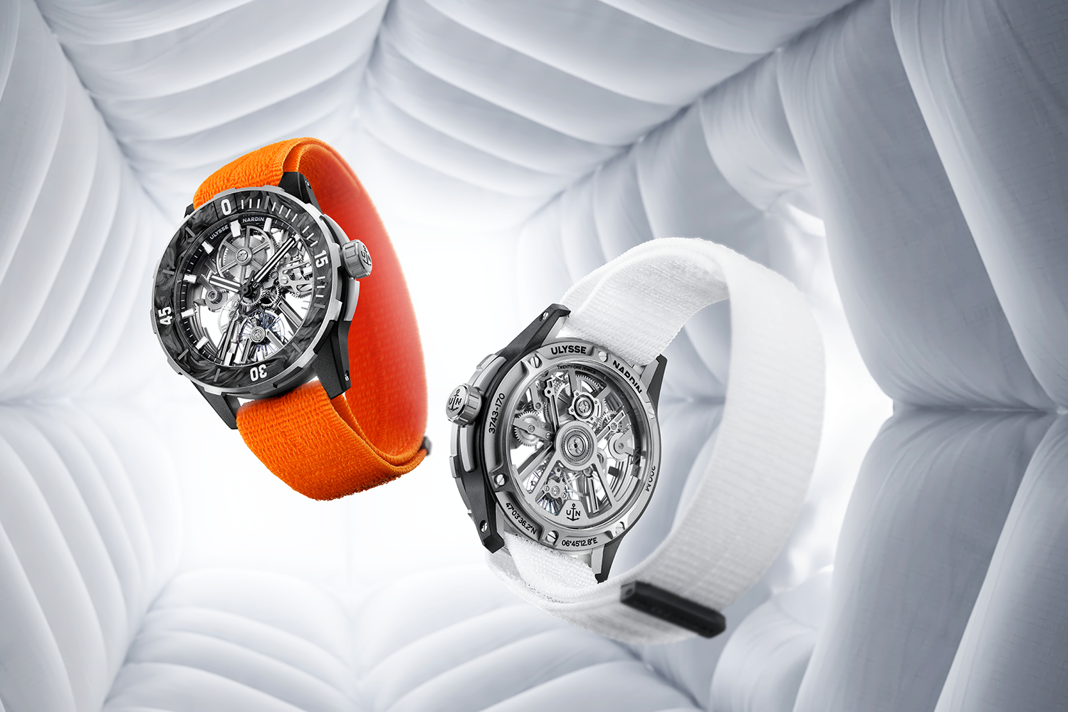 Despite its long history of marine chronometer production, Ulysse Nardin is a thoroughly modern maker whose cutting-edge timepieces largely eschew the staid traditionalism of Swiss watchmaking. Exhibit A: The famous Freak, which lacks a standard dial and hands. The new Ulysse Nardin Diver [AIR] rethinks the dive watch in the same manner that the Freak rethought the dial: Rather than opt for a heavy steel case and a simple black dial, U.N. went in the opposite direction, crafting a 44mm frame out of titanium and carbon fiber and creating the world’s lightest dive watch (52g with its trap and 46g without it). Beyond its ultralight housing, the Diver [AIR] also features a newly developed skeletonized movement optimized for weight — or the lack thereof. But don’t let this light weight fool you: The watch can withstand an impact in excess of 5,000 Gs.