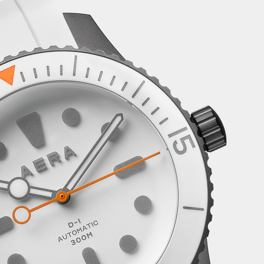 True to form, the oversized, hi-vis dial comes complete with blaze orange detailing on the second hand and matching bezel pip, while the contrasting SuperLuminova markers and classic diver-style bezel markings cement the collaborative timepiece as both a work of art and a serious piece of gear. It’s powered by a Sellita Swiss automatic movement with a 40-hour power reserve, 300 meters of water resistance and a quick-release rubber strap for maximum utility when you need it most.