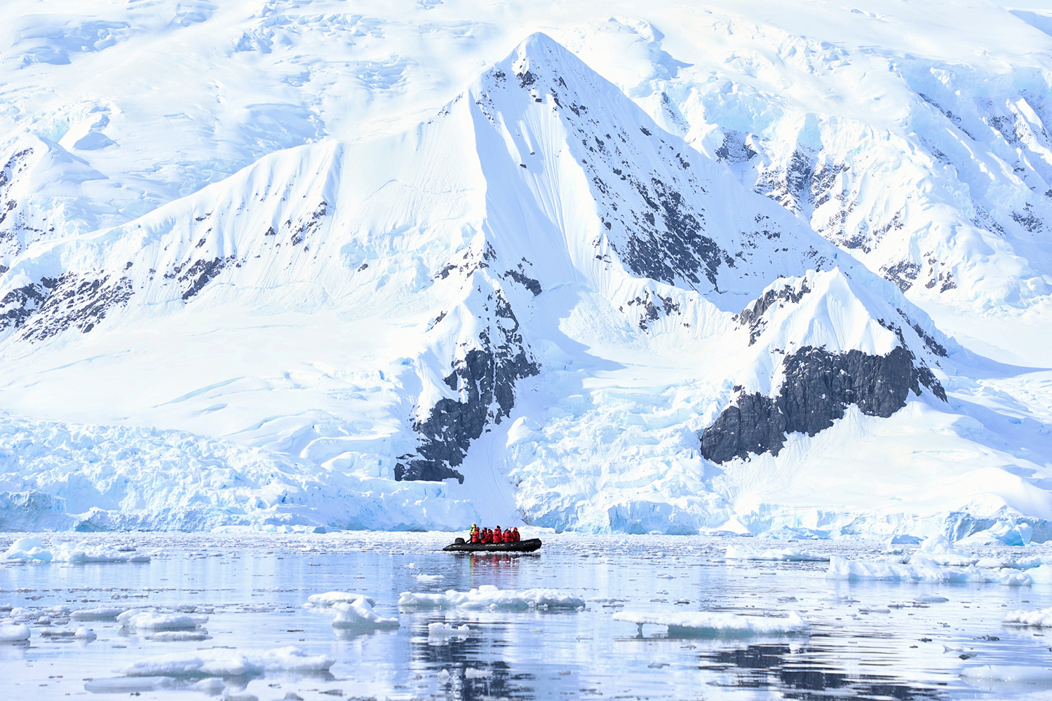 The objective for the morning is to hop on a Zodiac boat and soak it all in. With calm winds, there’s no noise save for the crackling of ice chunks in the water. There’s an unspeakable sense of perfection to the environs, a storybook setting. It’s the most pristine and preserved piece of nature on the planet we call home.
