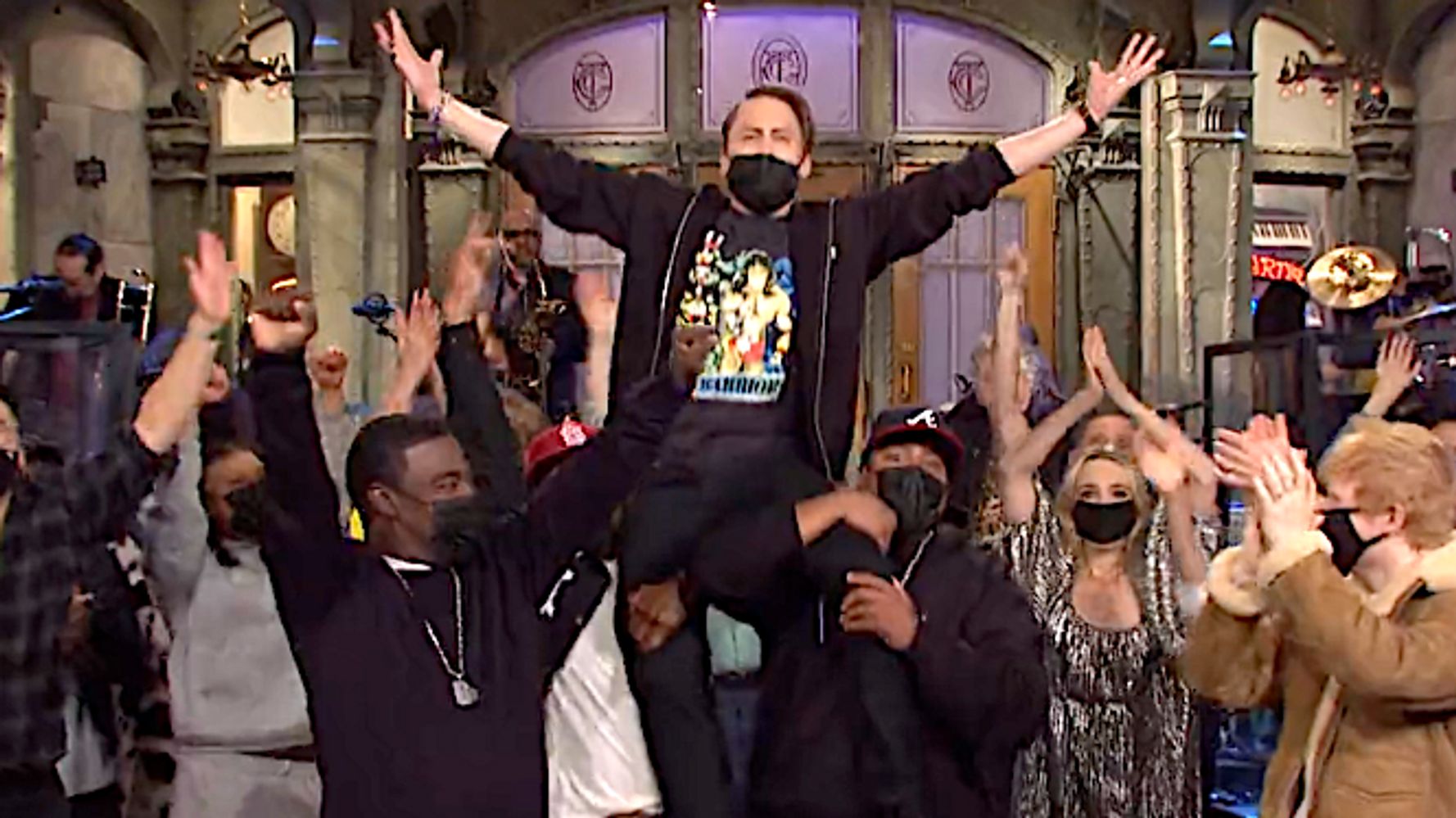 Consider: All of Studio 8H is vaccinated. Most are likely boosted, too. The cast has just acted together without masks for an hour; in some skits, they’re even kissing each other on the mouth. So what’s going on here? What’s with the masks? Is SNL just trying to encourage general public health awareness? Or have we eclipsed a solid-enough point on COVID that the practice is just performative? Broadly, societally speaking, how much longer do we have to do this?