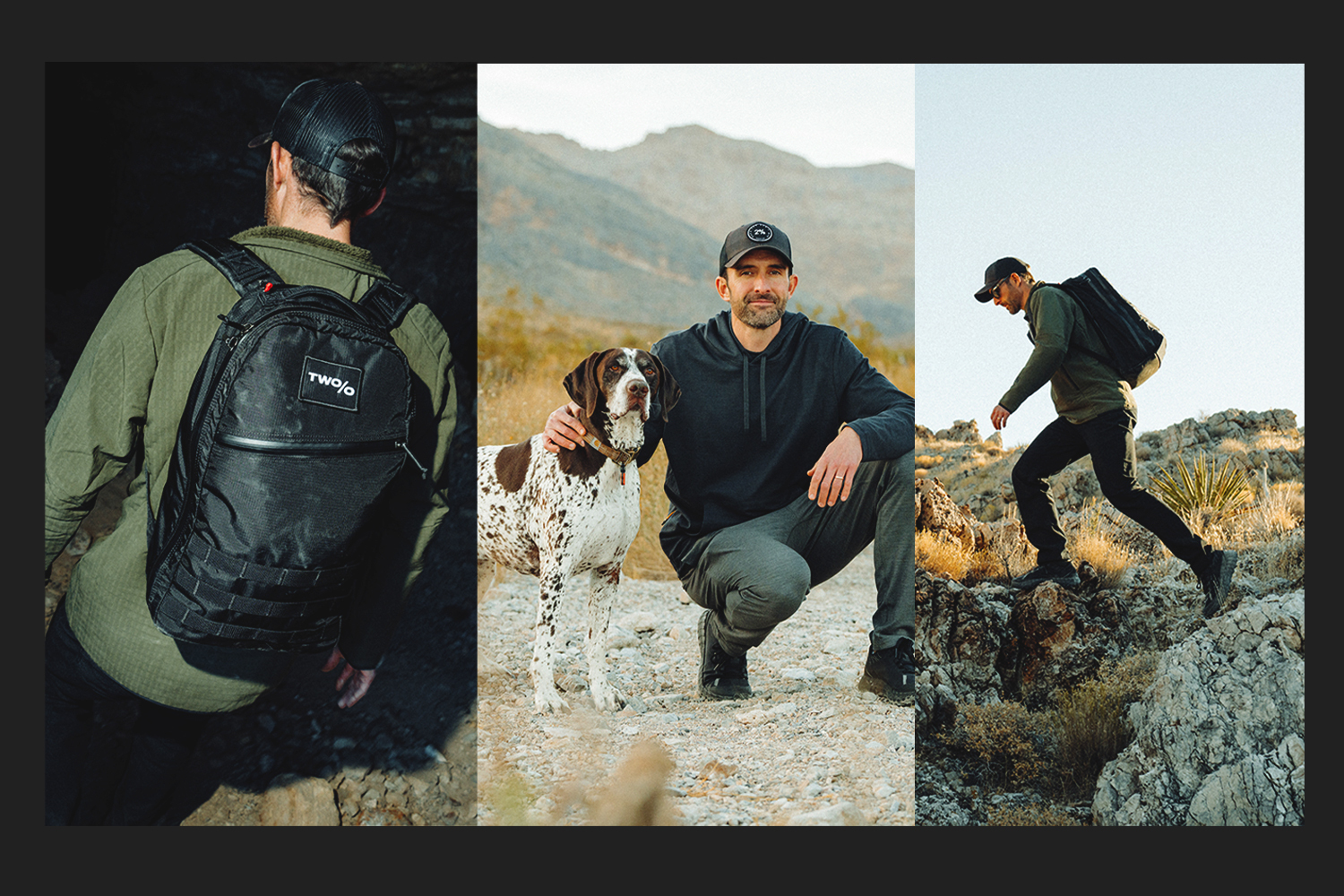 I mean, honestly, if I’m just walking in my neighborhood, not really anything — aside from my dogs. I always throw on a ruck when I walk my dogs because I have to walk the dogs, so if I can just throw on a pack and get more from every step, that’s totally a win. If I’m going really far, it depends on the environment, but a rain jacket. It doesn’t really rain much in Vegas, but if I was somewhere else, something like that. Also water. I find most people over-plan on gear; I’m definitely more stripped down in my approach. But bring what you think you need.