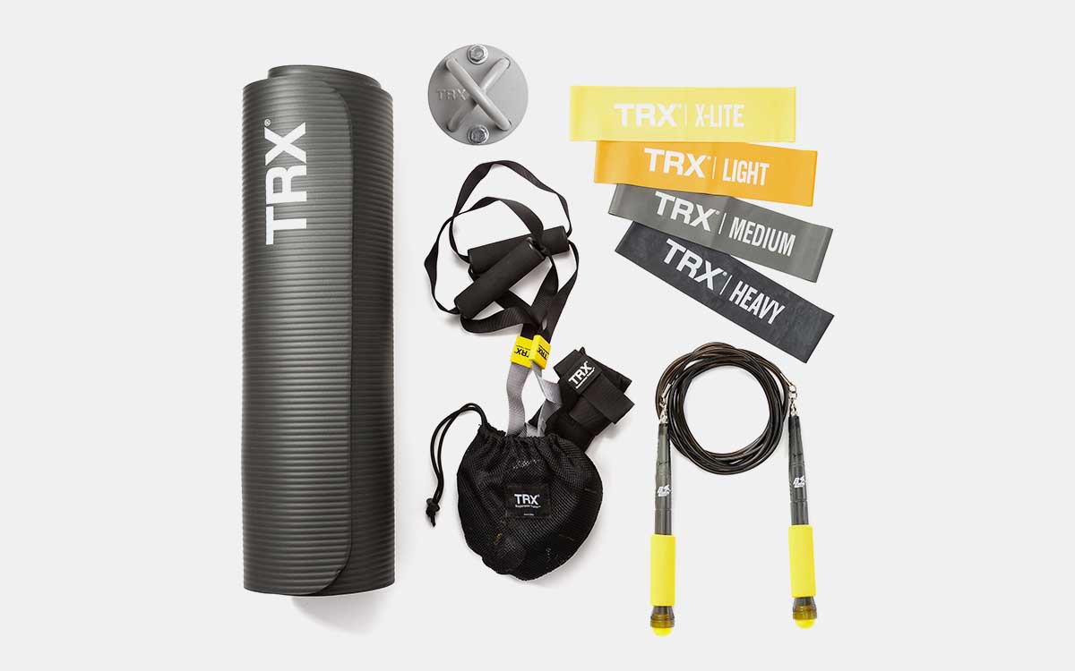 Heeding those rules will definitely keep your holiday gut at bay. Or, you could just pack some basic fitness equipment. To that end, we recommend the TRX Small Space Set, a bundle designed exclusively for Huckberry that includes a suspension system, resistance bands, a speed jumprope, yoga mat and a wall mount. Plus, charts with moves to help you get off the ground, and two workouts available via digital download.