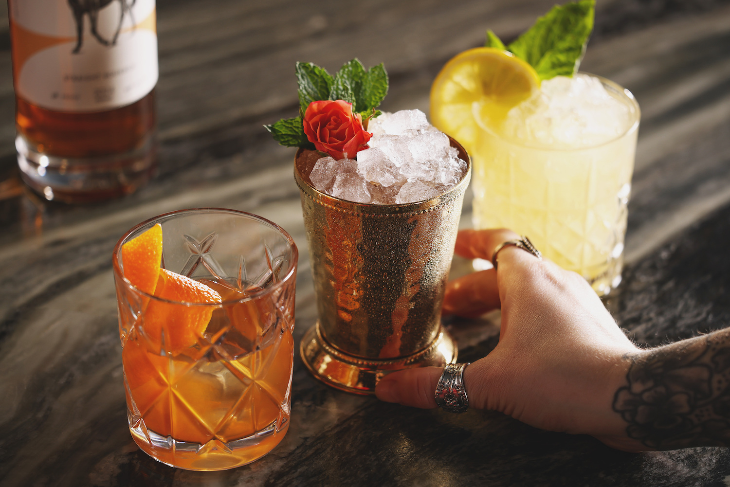 Of course, it wouldn’t be a Derby party without Mint Juleps, but we’re making a twist on the original this year. The Rose Runner Julep still contains mint and Pinhook Bourbon, but we’re also adding raspberry syrup and a touch of rosewater for a festive twist. Bonus points if you custom engrave a Julep cup for every guest to take home as a keepsake.